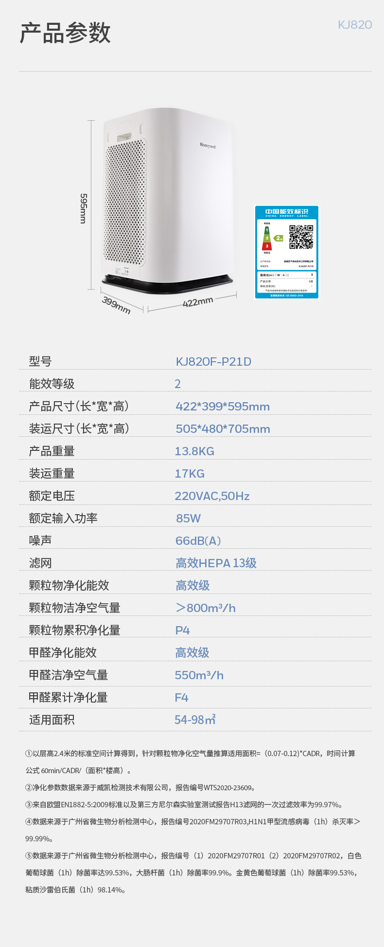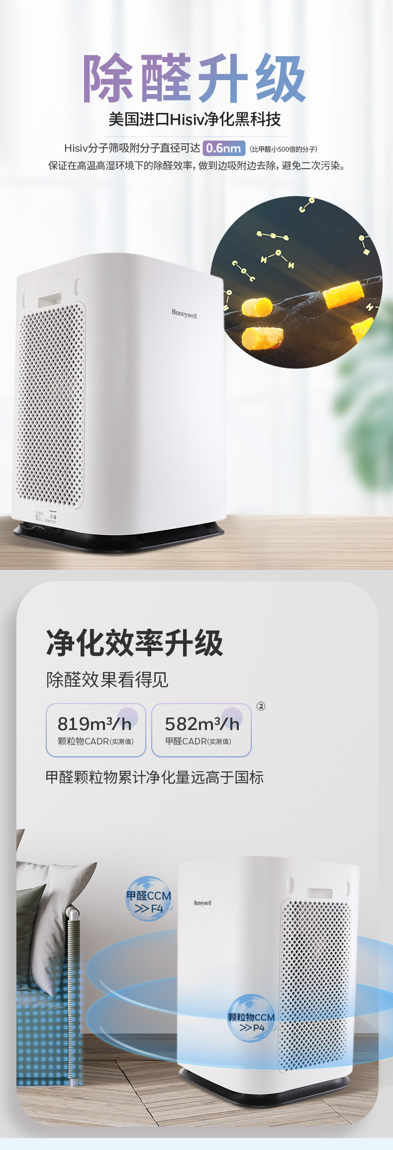 霍尼韋爾(Honeywell)KJ820F-P21D空氣凈化器 室內(nèi)凈化除甲醛除菌 新房辦公室凈化器