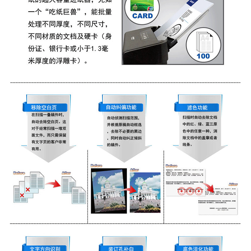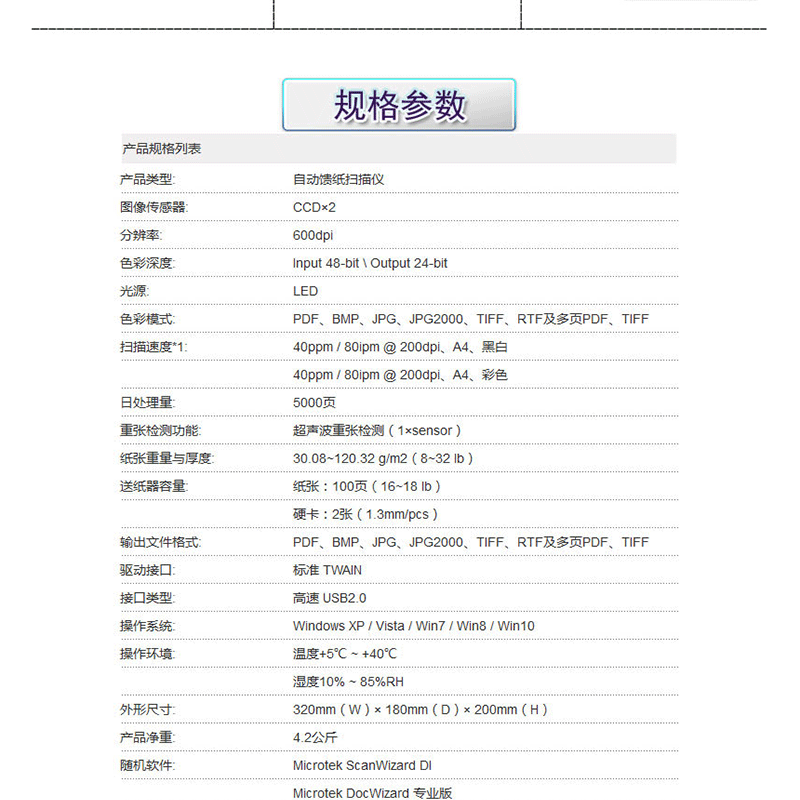 支持硬卡掃描,日處理5000頁,分辨率:600dpi ?