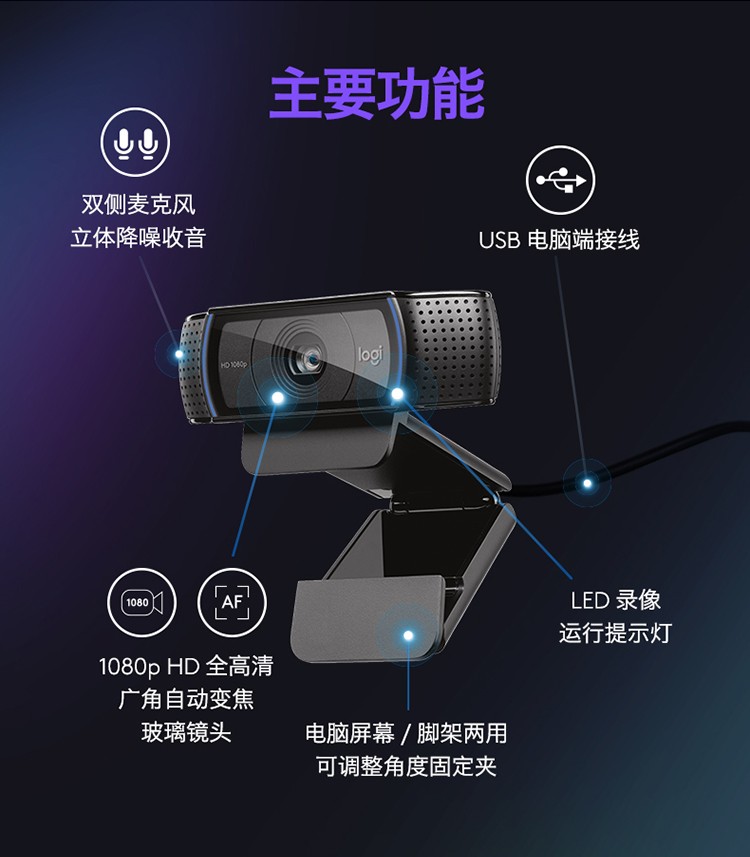 羅技(Logitech) C920 高清網(wǎng)絡(luò)攝像頭 監(jiān)控?cái)z像頭