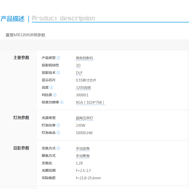 夏普(SHARP) XG-MX320A 商務辦公投影機 3200流明