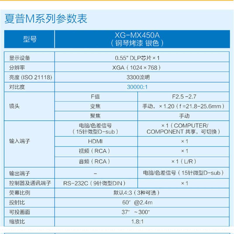 夏普(SHARP) XG-MX450A 3D高清3300流明 教育商務(wù)會(huì)議投影機(jī)