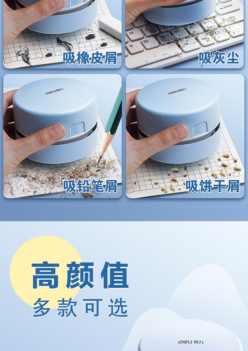 得力 桌面吸塵器電動(dòng)橡皮擦屑清潔器 淺藍(lán)/手提充電款18890