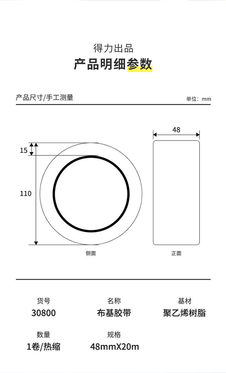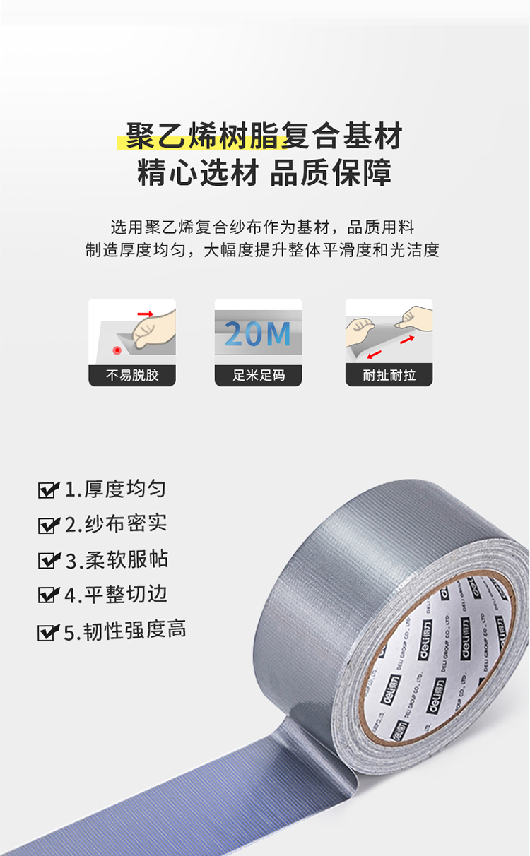得力 強力布基膠帶 耐磨防水易手撕48mm*20m*230μm 30800