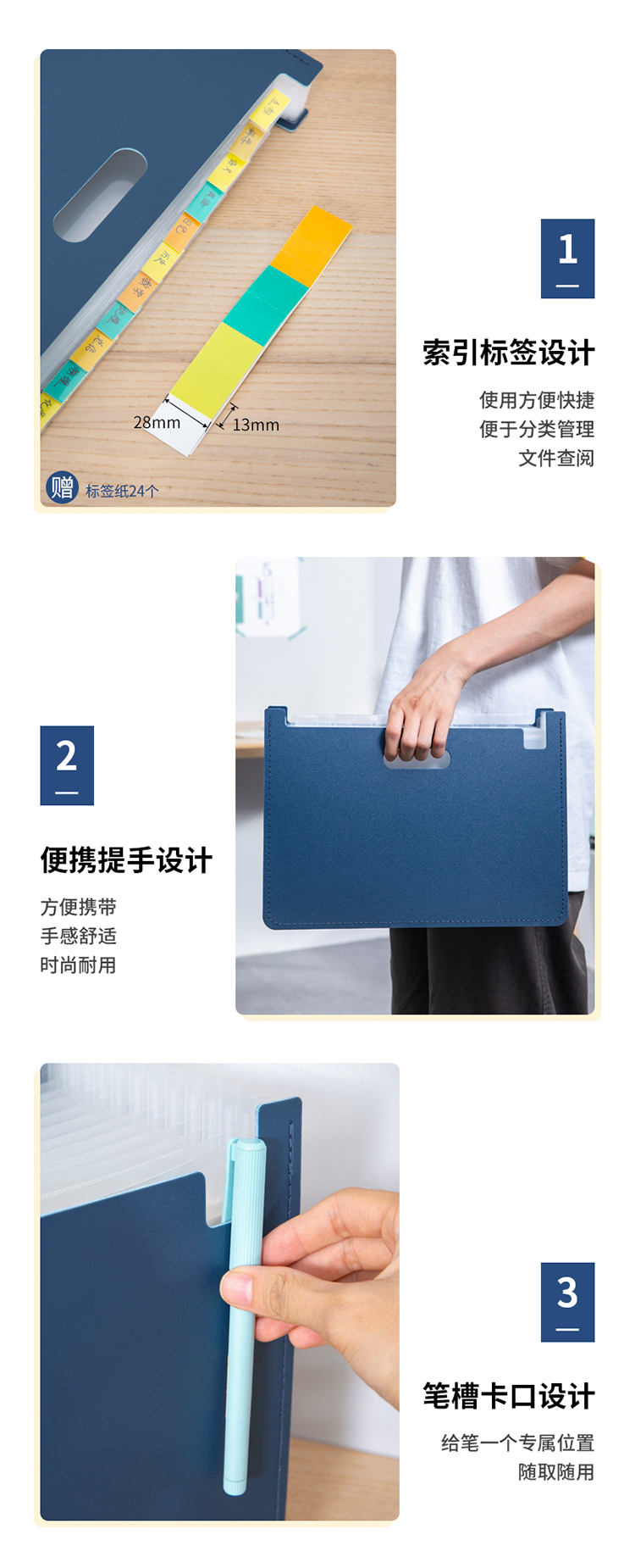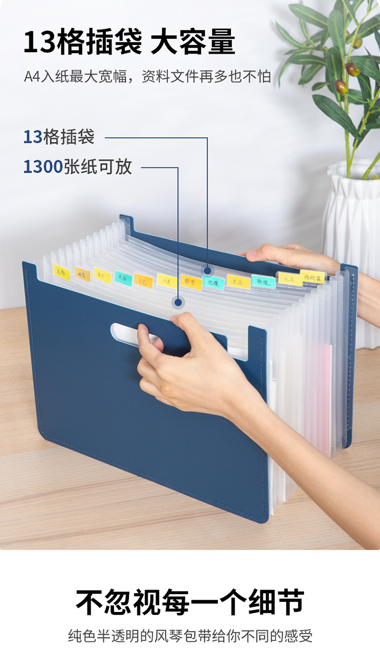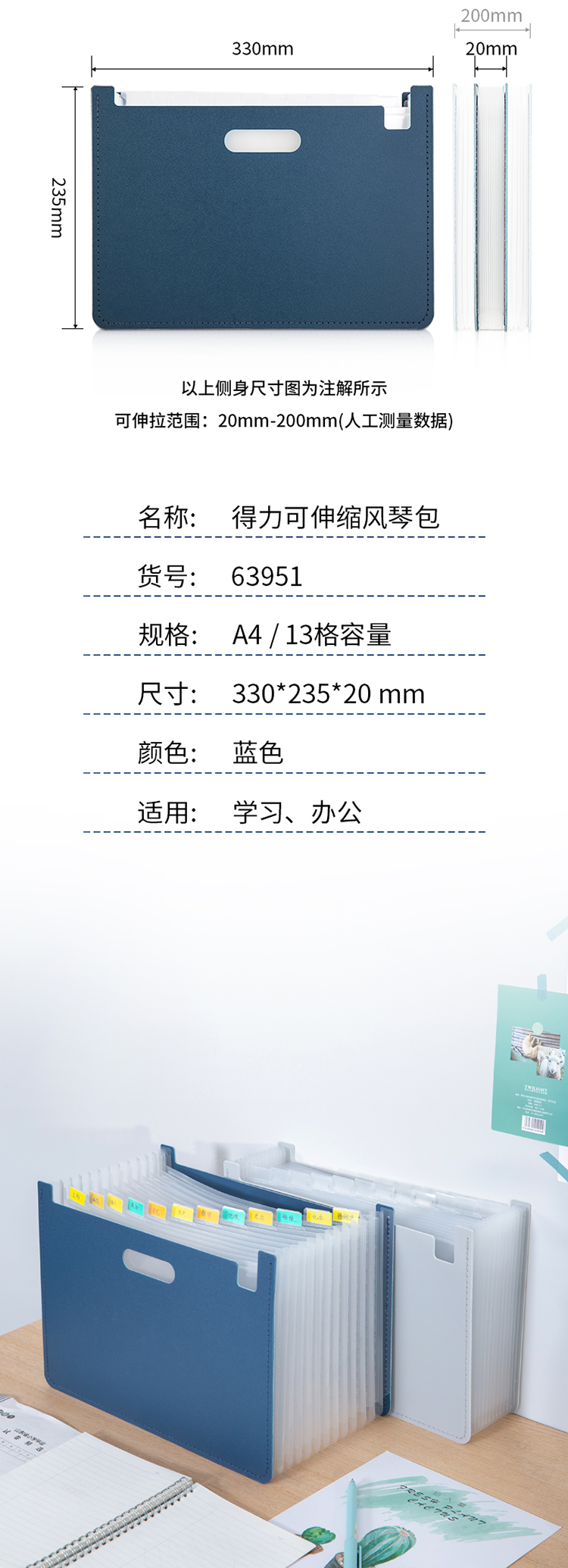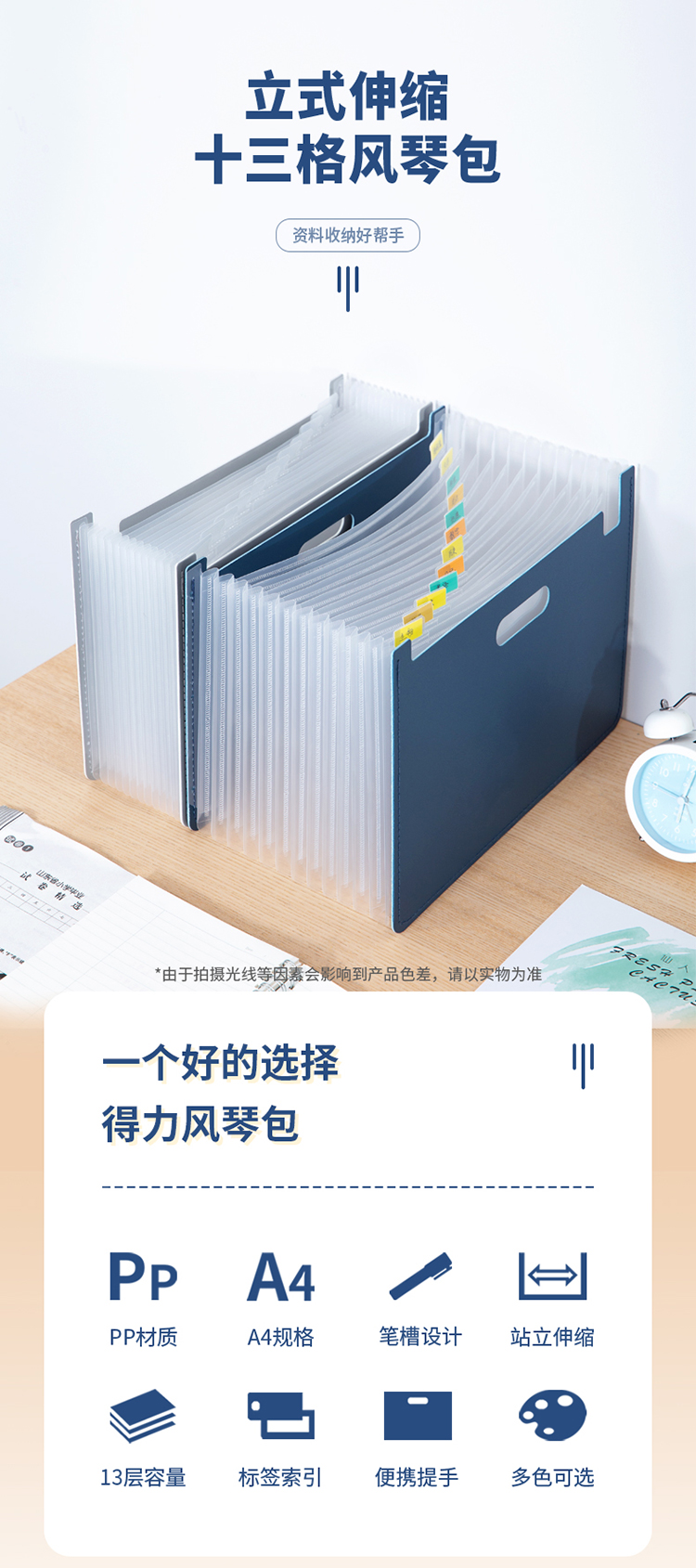 得力(deli)13格A4立式大容量風琴包 多層可伸縮文件框資料冊收納夾 票據(jù)資料收納冊 63951
