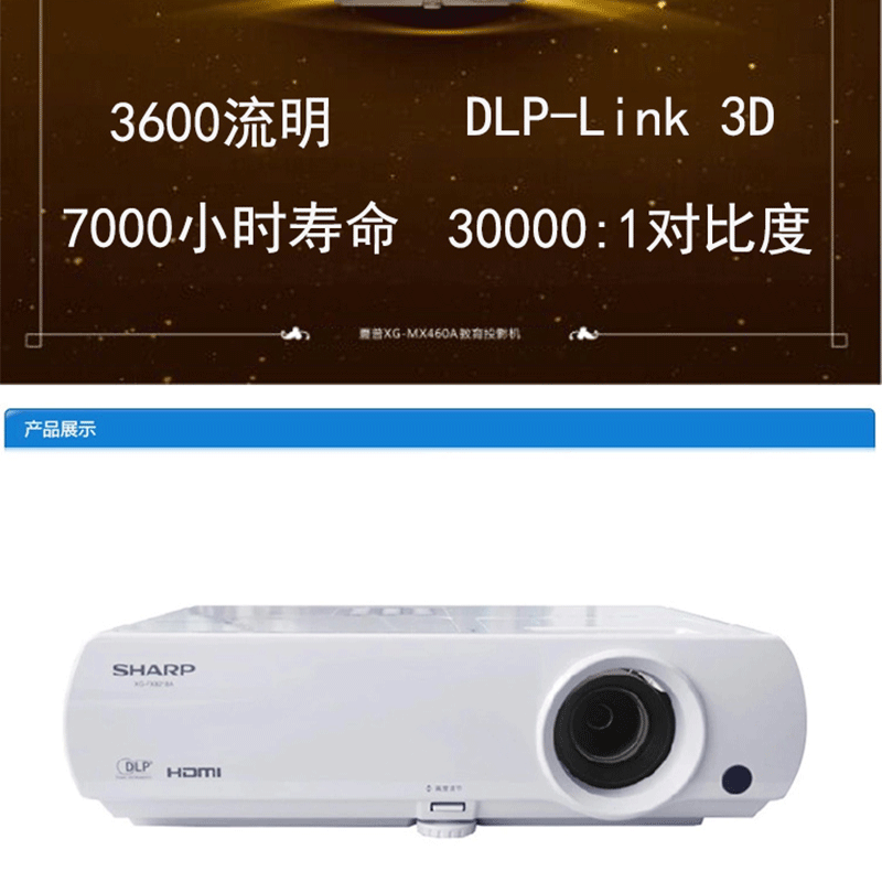 夏普(SHARP) XG-MX460A 高亮3D高清商務教育會議投影機