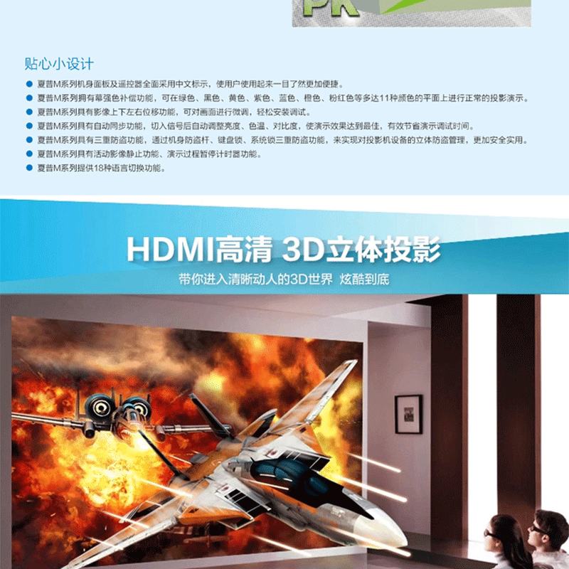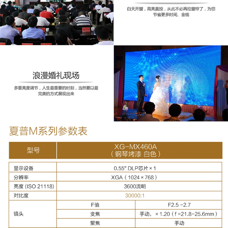 白天無遮清晰直投,3600流明高亮,30000:1對比度,XGA主流分辨率,HDMI高清接口,3D功能 ?