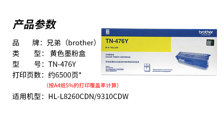 兄弟(brother)TN-476Y 黃色墨粉盒(適用HL-L8260CDN/9310CDW機(jī)型)
