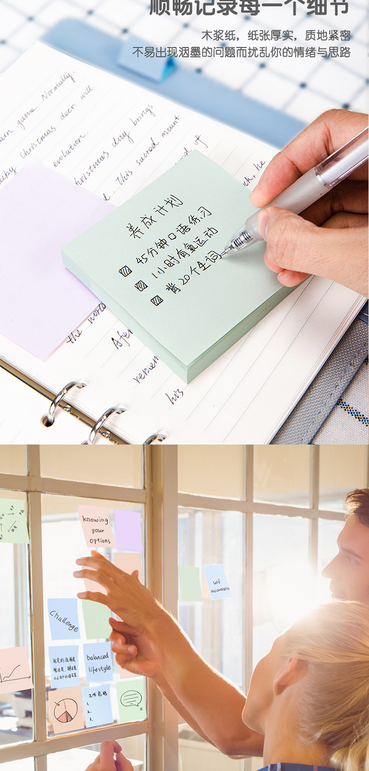 得力(deli)400張4色淺調(diào)系列淡彩簡約便利貼 76*76mm便簽本/記事貼/ 自粘留言本 辦公用品 21550