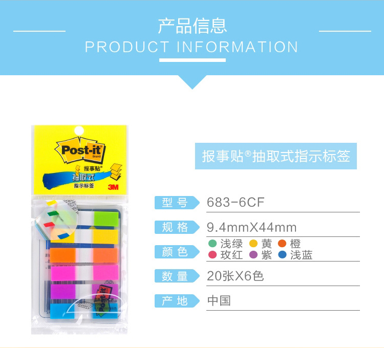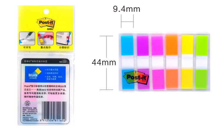 3M 683-6CF 報(bào)事貼透明指示標(biāo)簽(20片X6色)熒光色 36包/盒