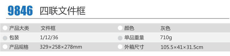 得力(deli) 9846 穩(wěn)固耐用 四聯(lián)文件框(灰色)
