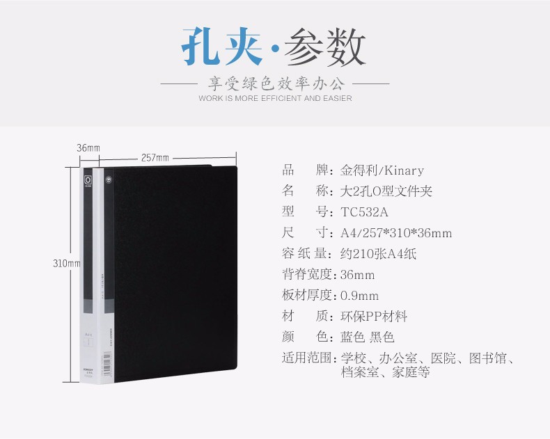 金得利(KINARY) TC532A 大二孔O型文件夾 顏色隨機(jī)
