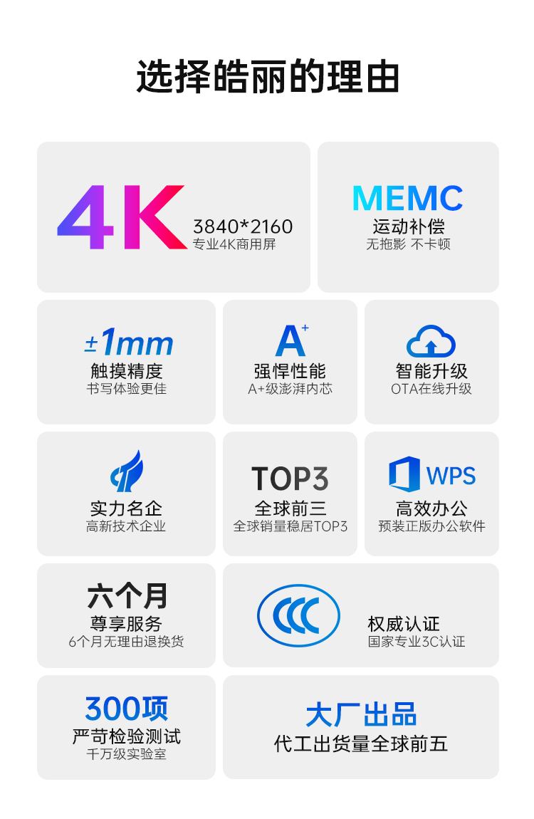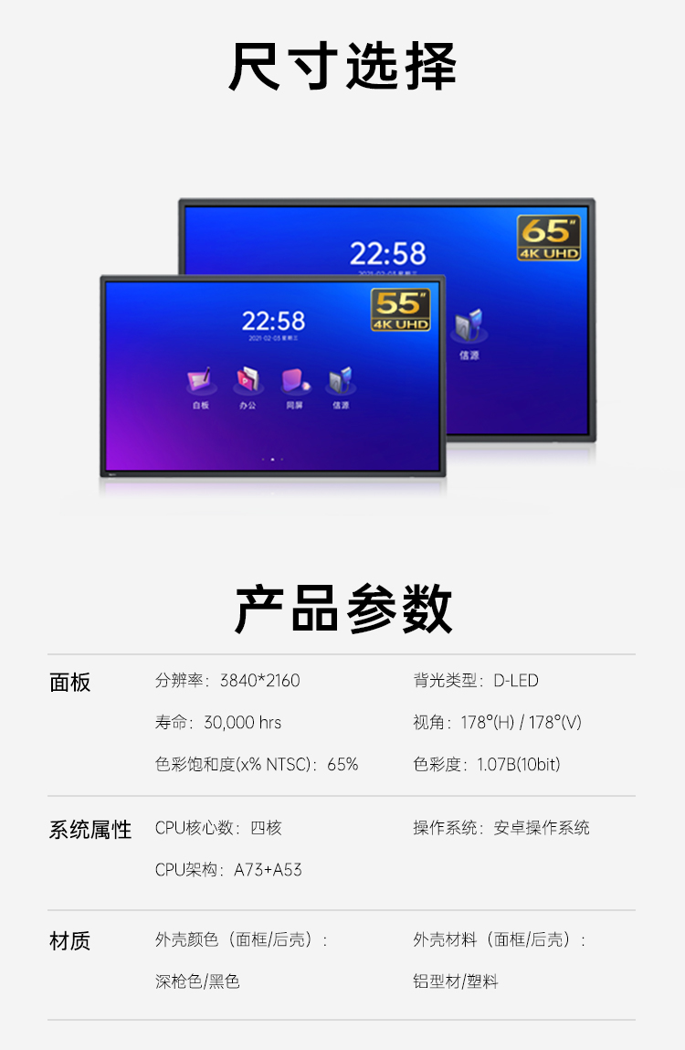 皓麗65英寸 電子白板4K觸摸大屏/E65