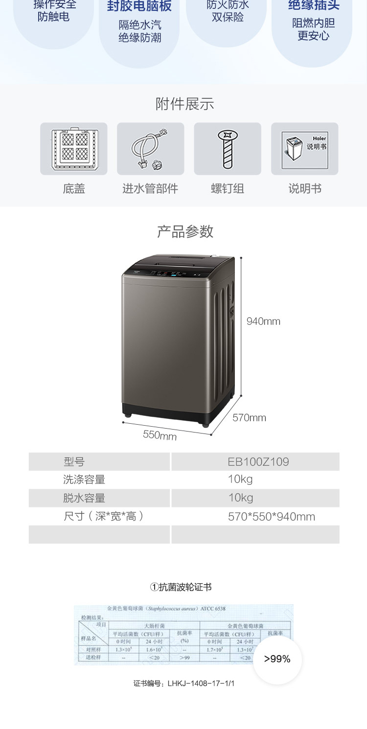 海爾(Haier)洗衣機(jī) 10公斤大容量 EB100Z109
