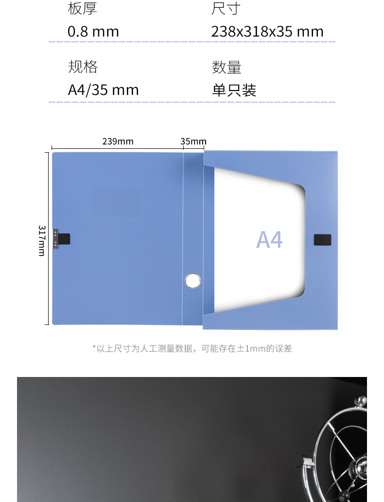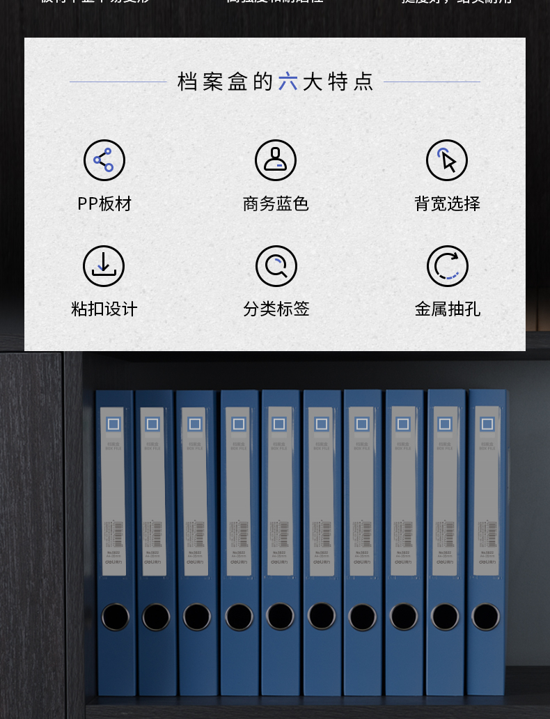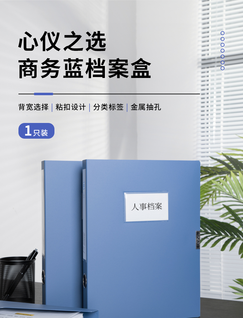 齊心(Comix) 75mm加厚檔案盒/A4文件盒/鯤鵬系列粘扣塑料資料盒 辦公用品 灰藍(lán)A1259