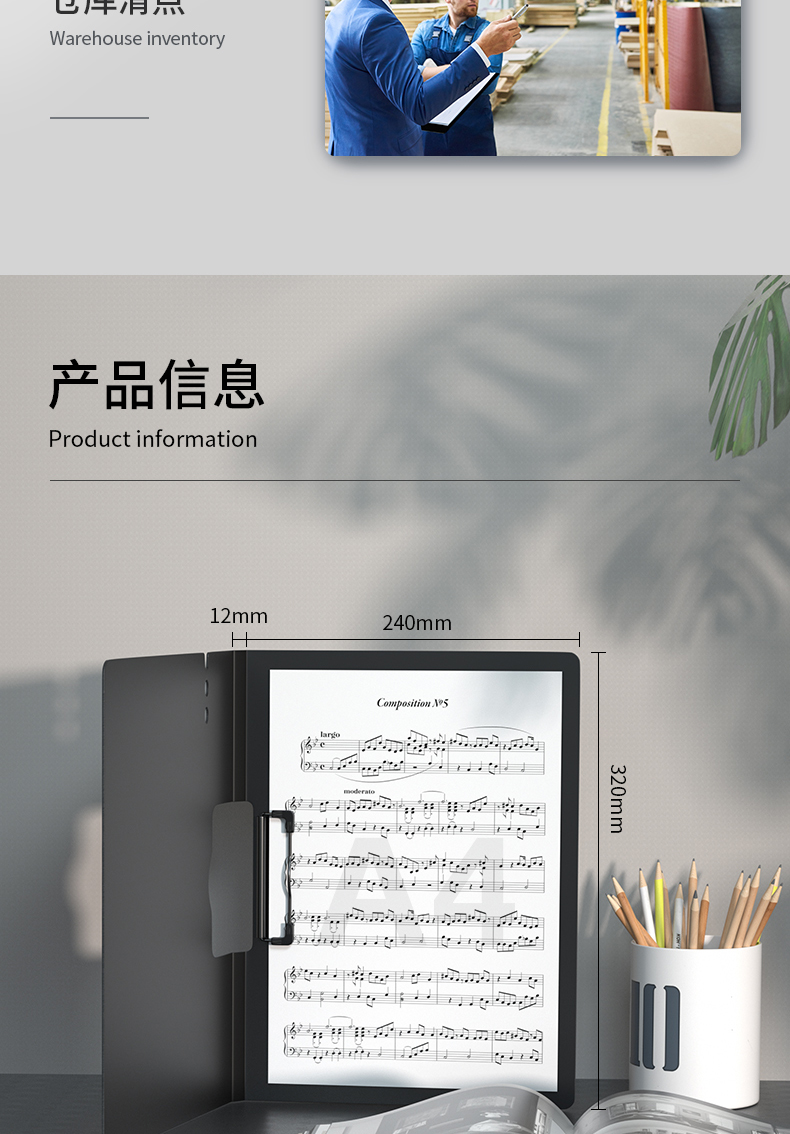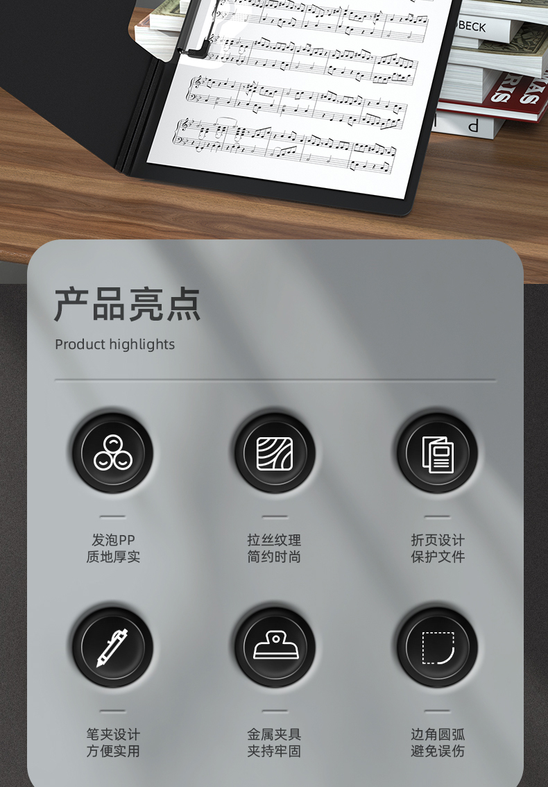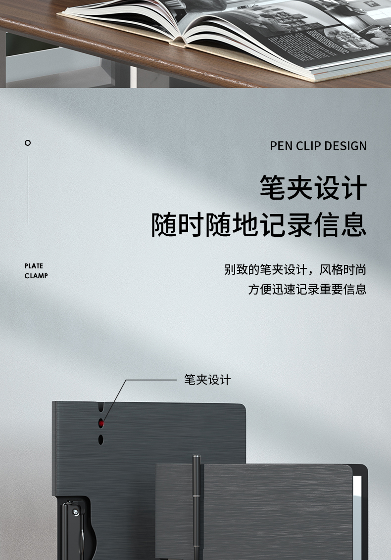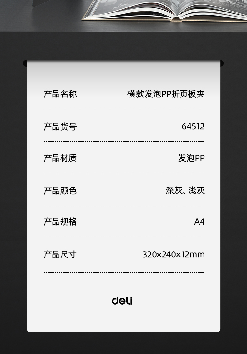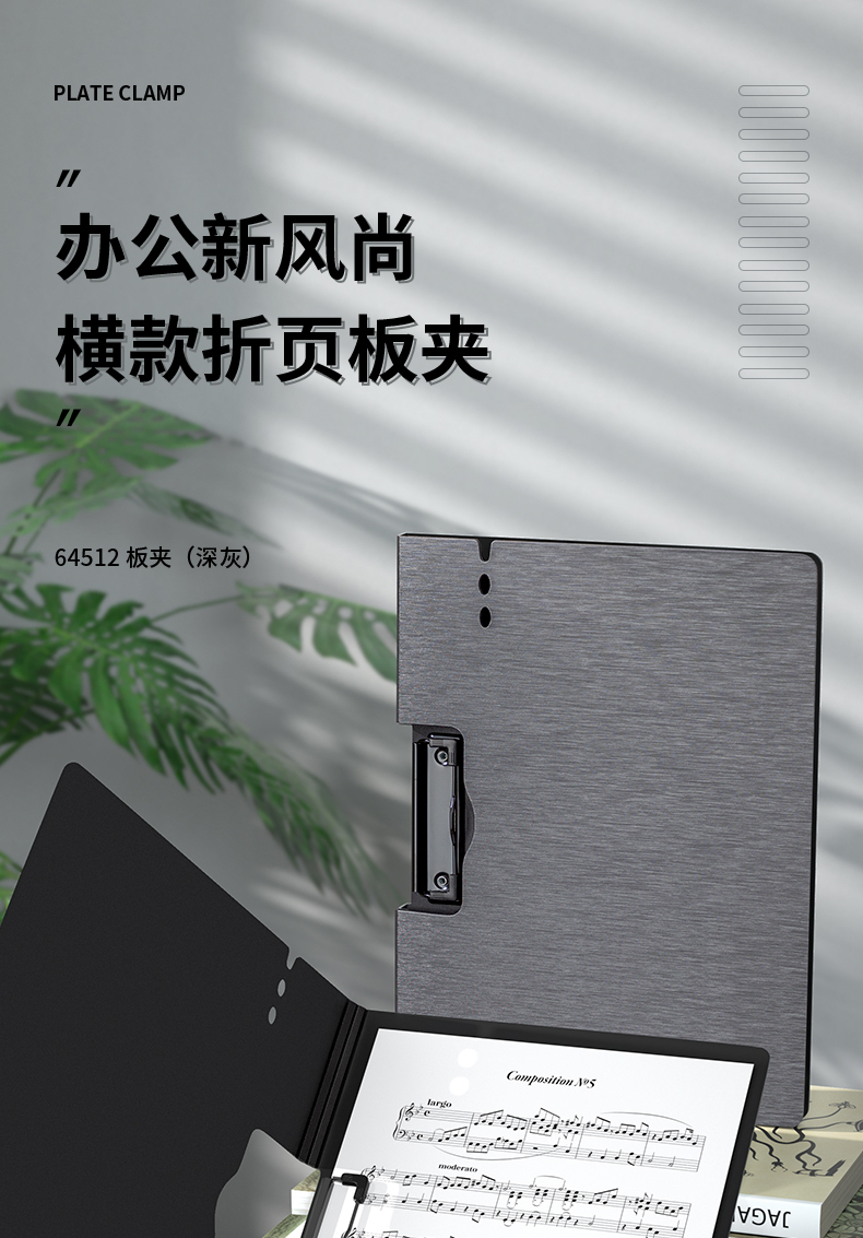 得力(deli)A4橫式折頁(yè)板夾會(huì)議夾 64512深灰
