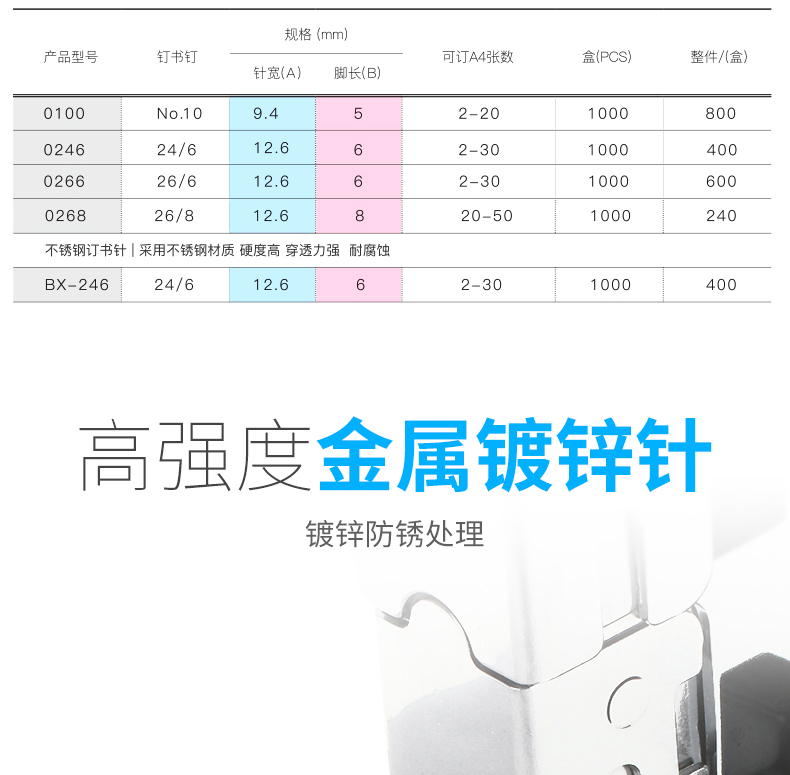 得力(deli)24/8加厚訂書釘/訂書針 500枚一盒 辦公用品 0027