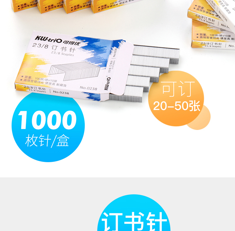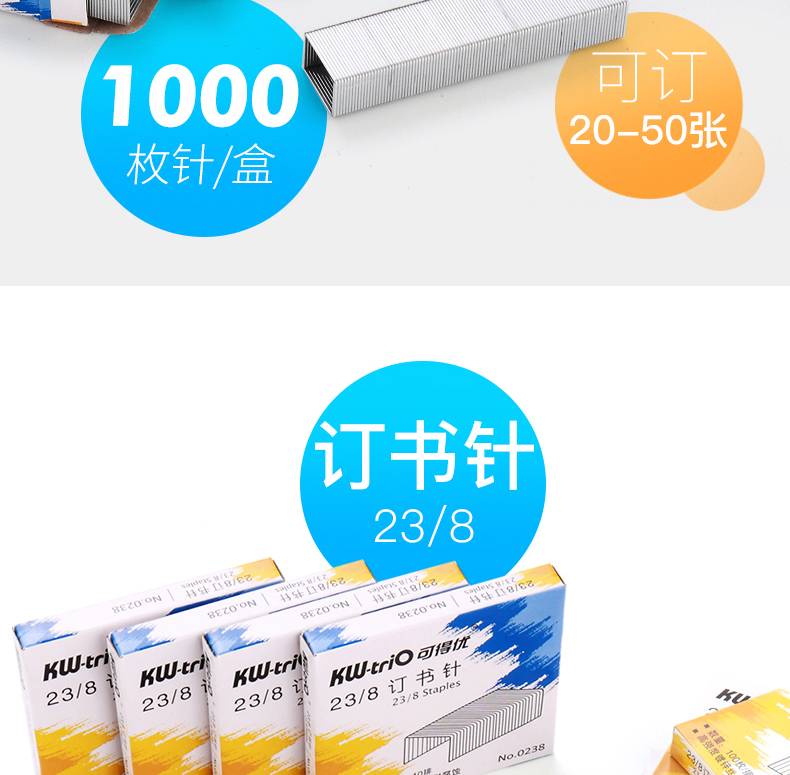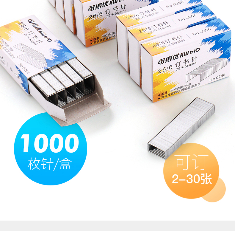 可得優(yōu)(KW-triO) 常用規(guī)格多規(guī)格訂書針輕型加厚訂書釘穿透力強(qiáng)耐腐蝕 0266【訂2-30頁】 20盒裝