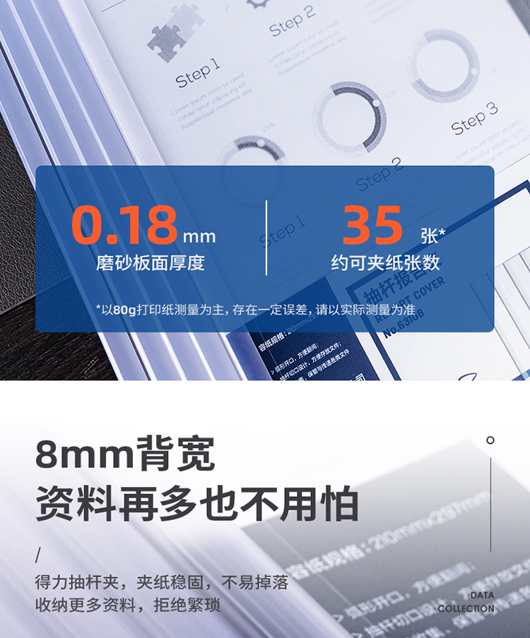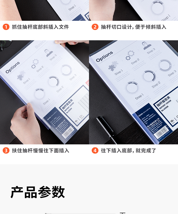 得力(deli)10只A4透明拉桿夾 8mm抽桿夾報告夾63108