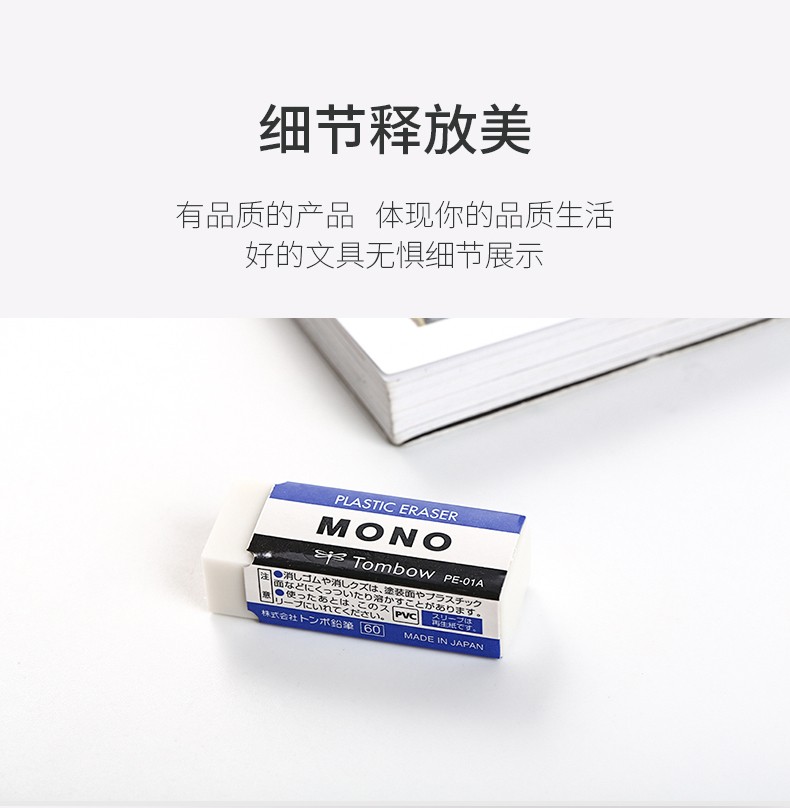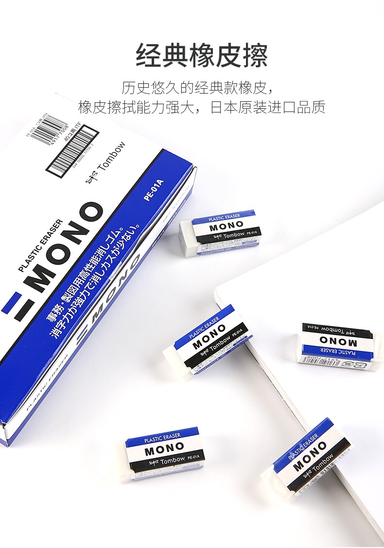 蜻蜓MONO系列美術(shù)白色繪圖鉛筆橡皮PE-01APE-03A白色10塊
