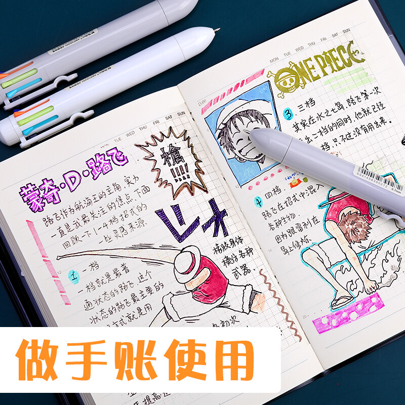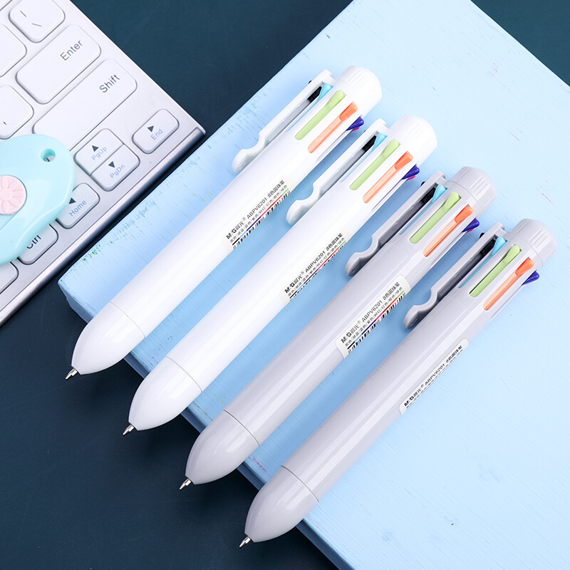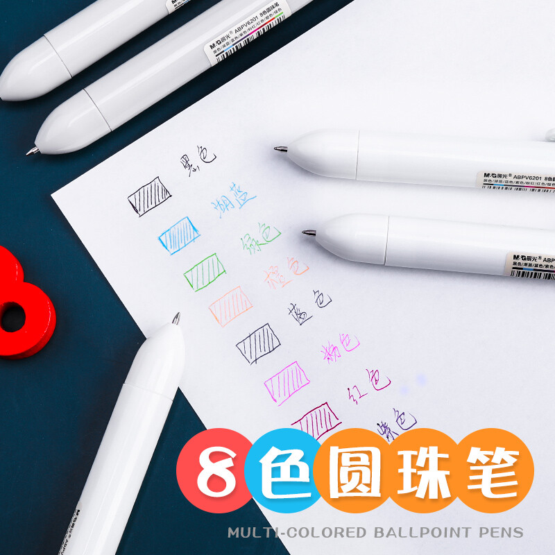 晨光 八色圓珠筆按壓式油筆多色中性筆合一 0.7黑色子彈頭彩色筆 V6201