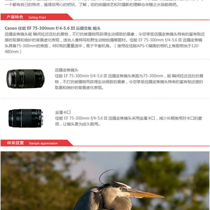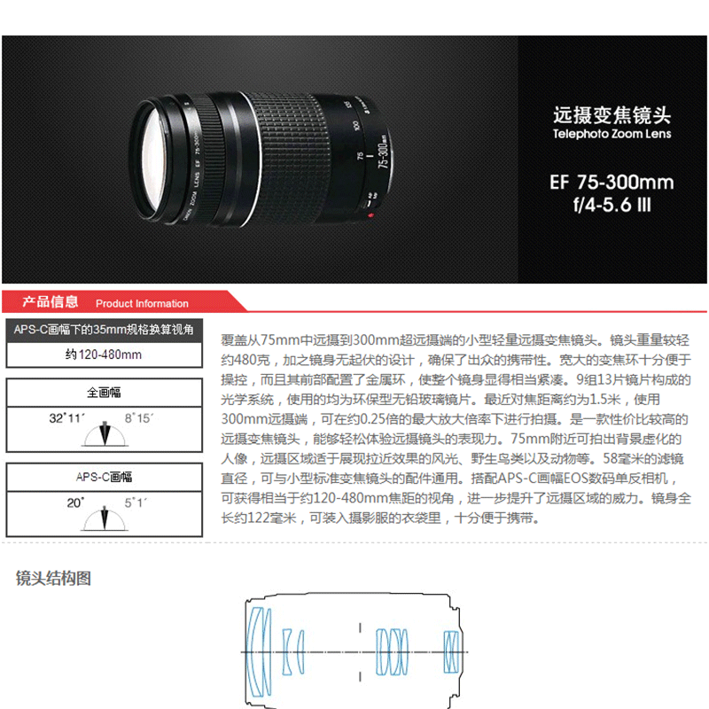 佳能(Canon) EF 75-300mm f/4-5.6 III 遠攝變焦鏡頭