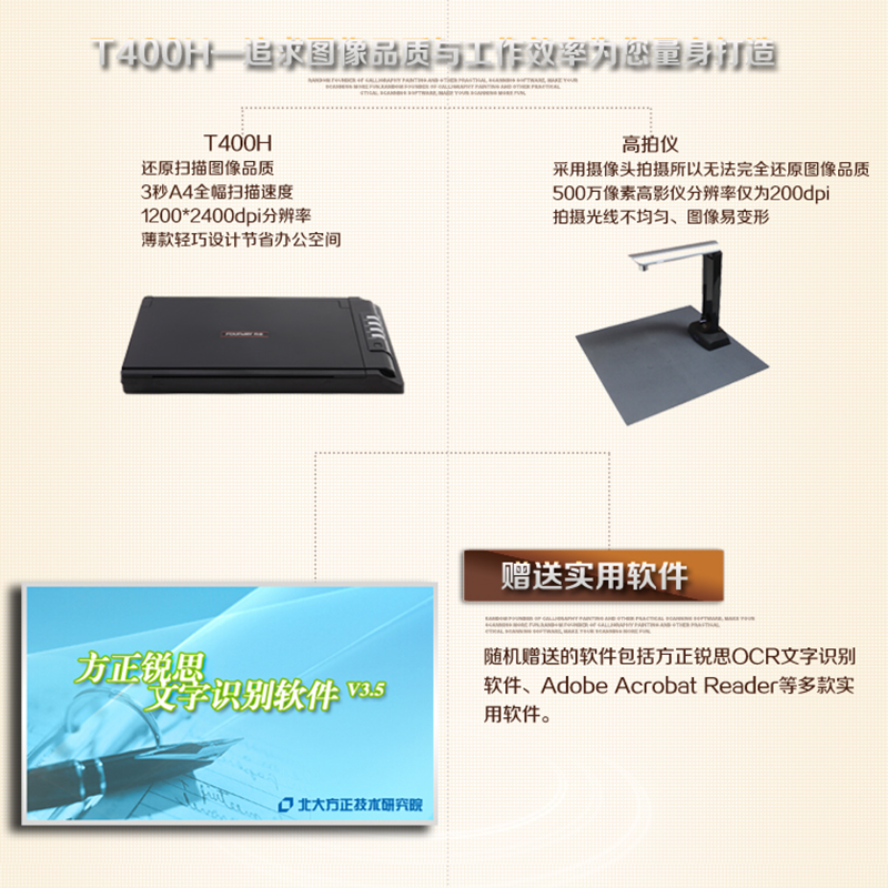 方正(Fouder) T400H A4平板掃描儀 橫向開蓋