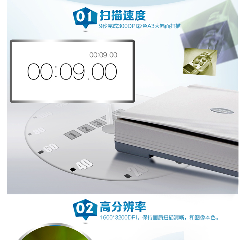 9秒完成300dpi A3尺寸彩色掃描,高圖像質(zhì)量—CCD掃描器件,附送多種圖像處理軟件 ?
