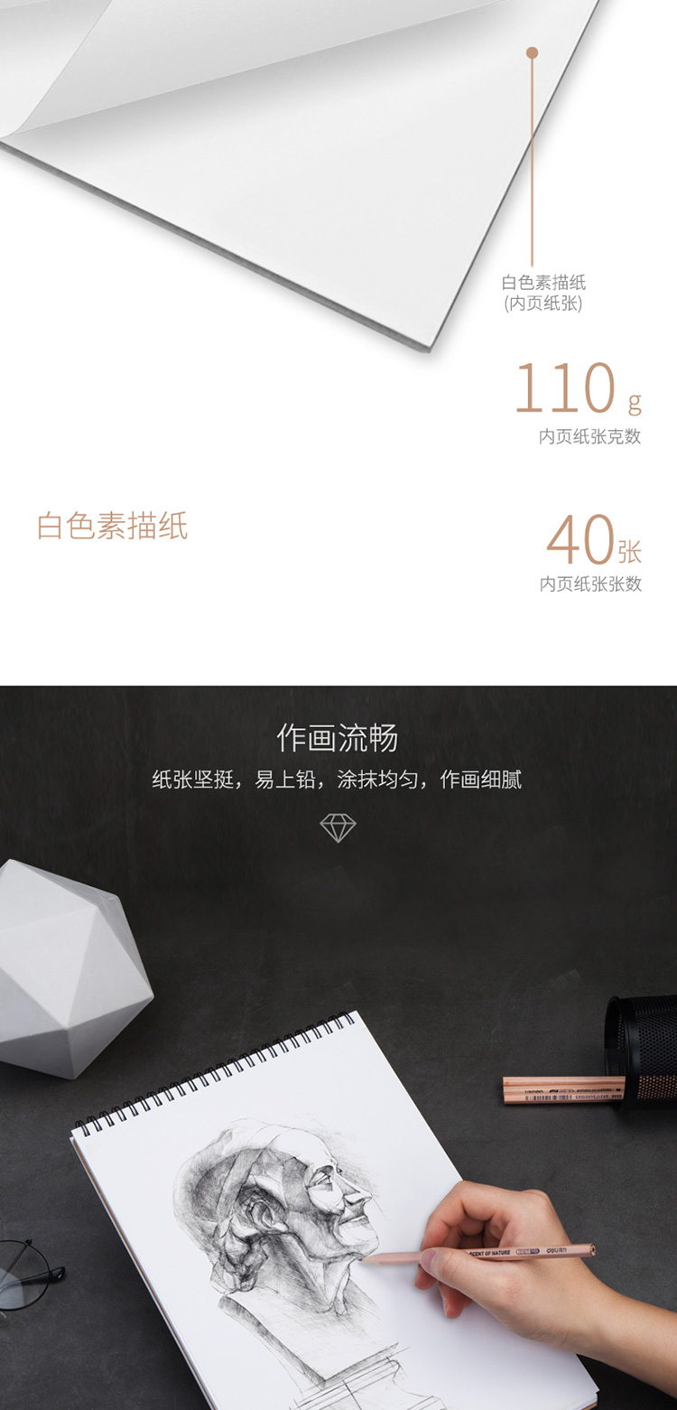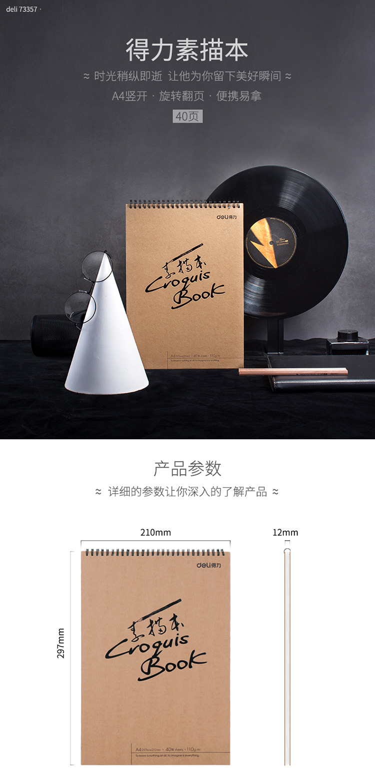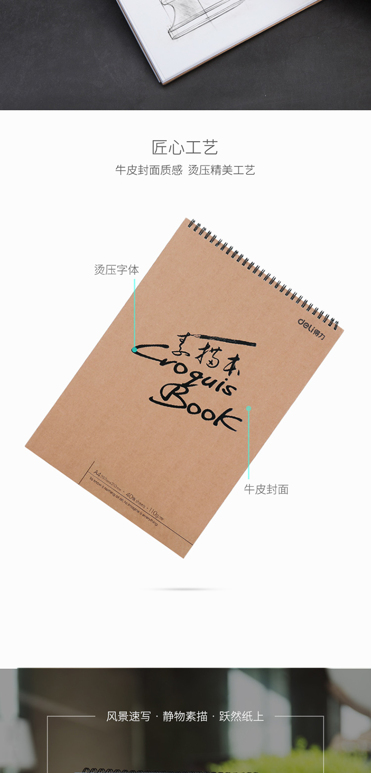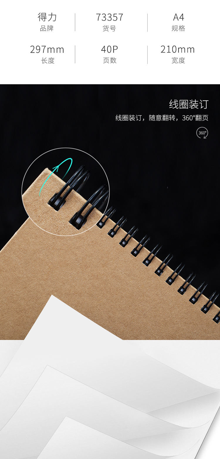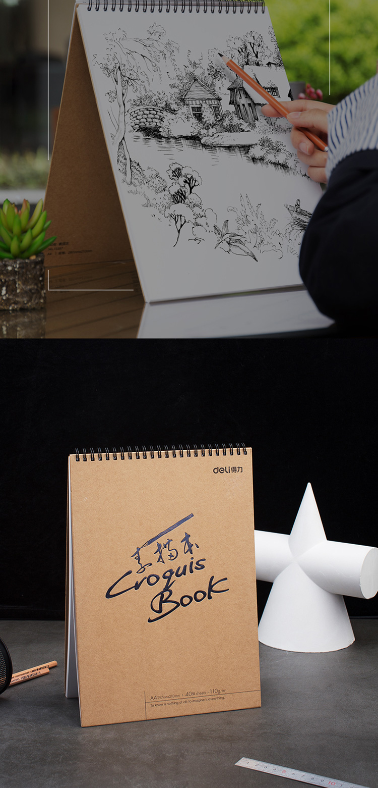 得力(deli)A4/40張牛皮紙款美術(shù)素描本速寫本73357