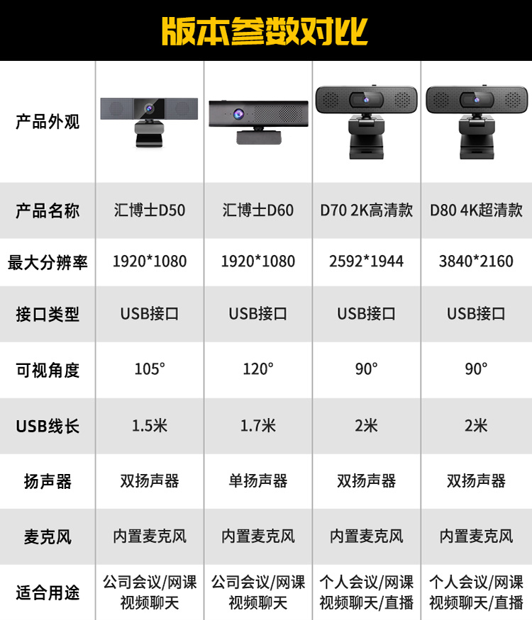 匯博士 視頻攝像頭 高清1080pUSB三合一D80標(biāo)配