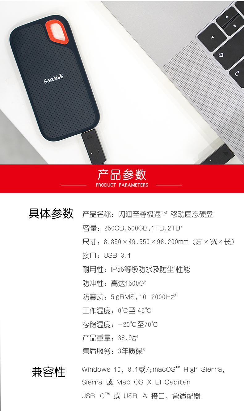 閃迪(SanDisk)1TB Type-c移動硬盤(PSSD)Z25
