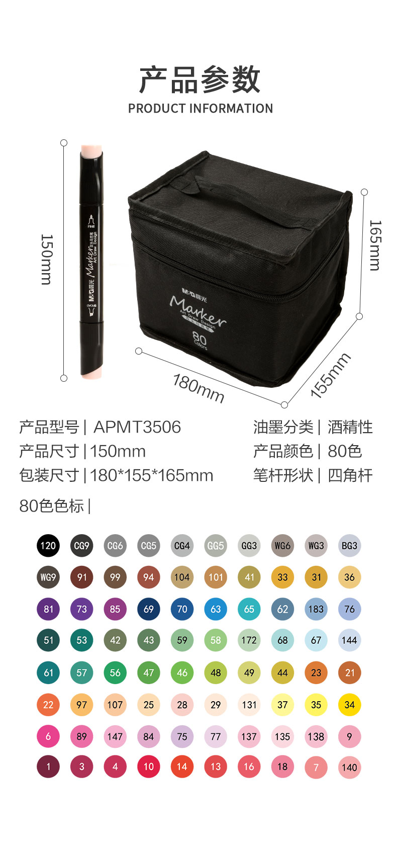 晨光(M&G)文具80色雙頭酒精性速干馬克筆 APMT3506