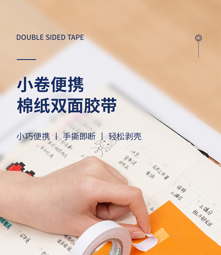 得力(deli)高粘性棉紙雙面膠帶 12mm*10y(9.1m) 單卷裝 創(chuàng)意小卷芯 30435
