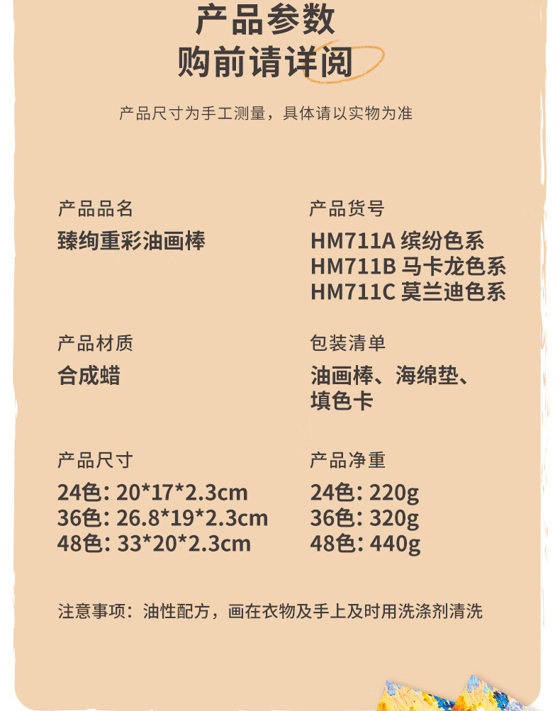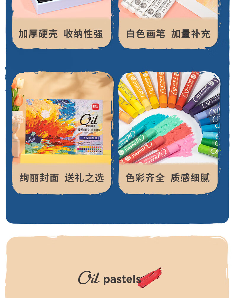 得力(deli)48色重彩蠟筆套裝 HM711A-48