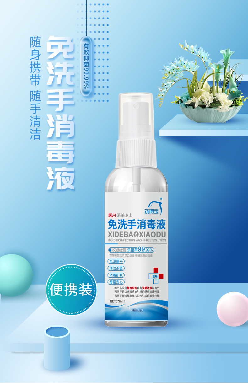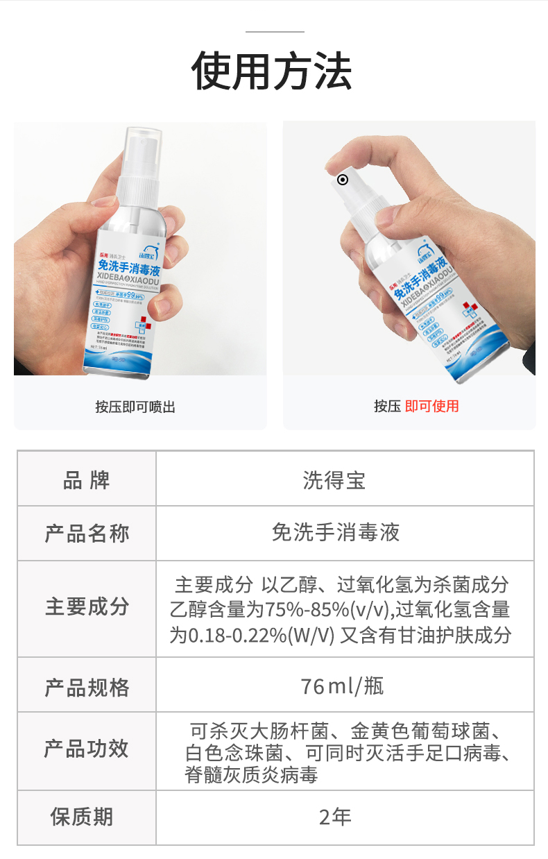 洗得寶 75%醫(yī)用酒精免洗洗手液 免洗手消毒液76ml 居家辦公學(xué)校便攜