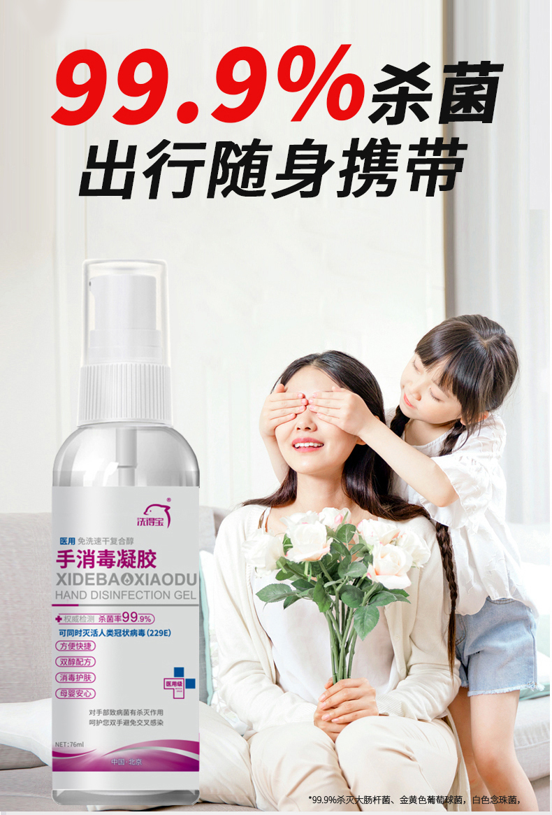 洗得寶 醫(yī)用酒精免洗洗手液 免洗手消毒凝膠手消毒液76ml