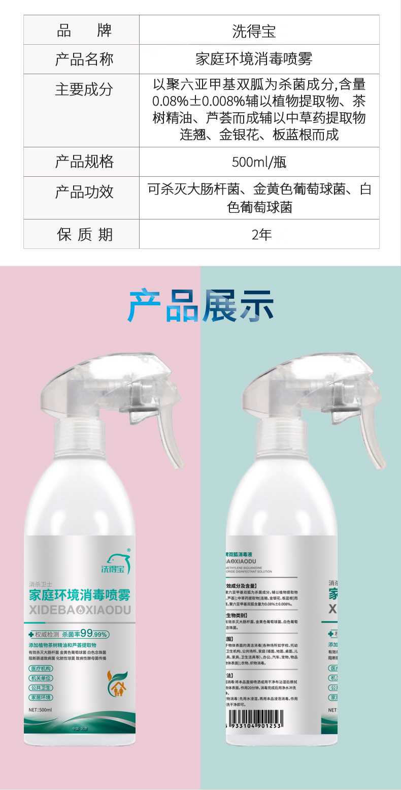 洗得寶 消毒液家庭環(huán)境消毒噴霧500ml