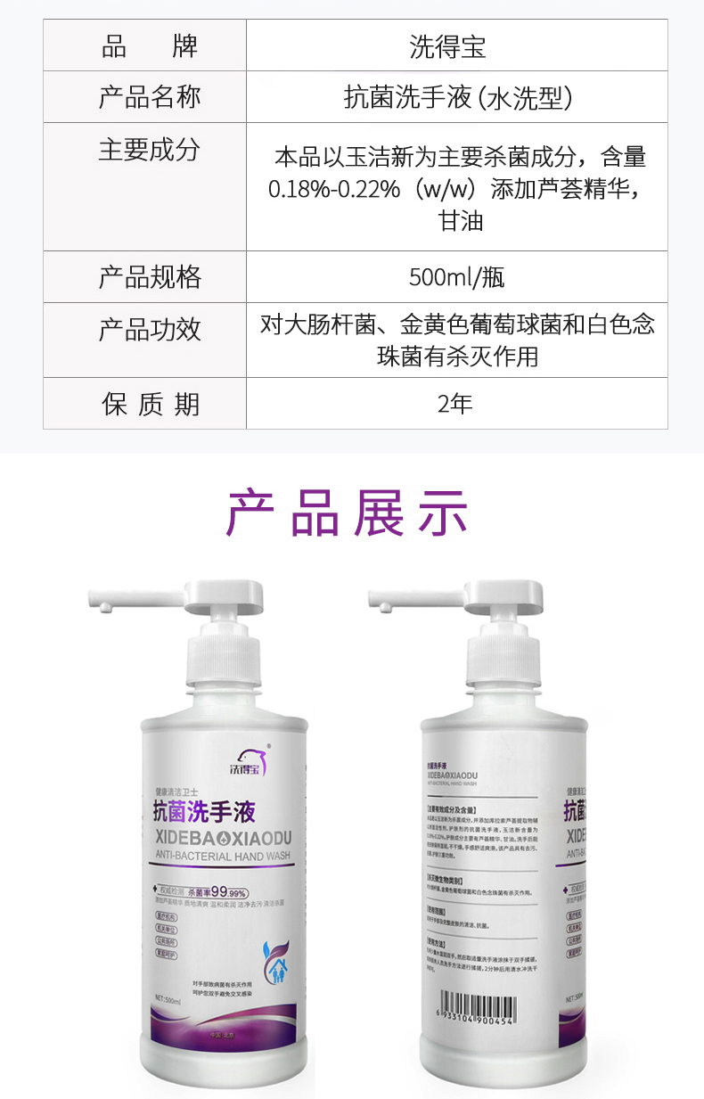 洗得寶 抗菌洗手液消毒洗手液 護(hù)膚保濕殺菌500ml/瓶