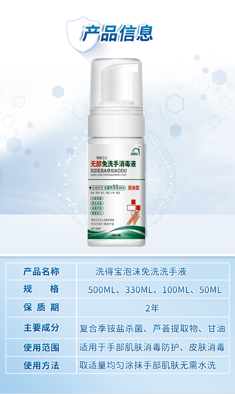 洗得寶 免洗洗手液 不含酒精免洗手消毒液50ml泡沫型