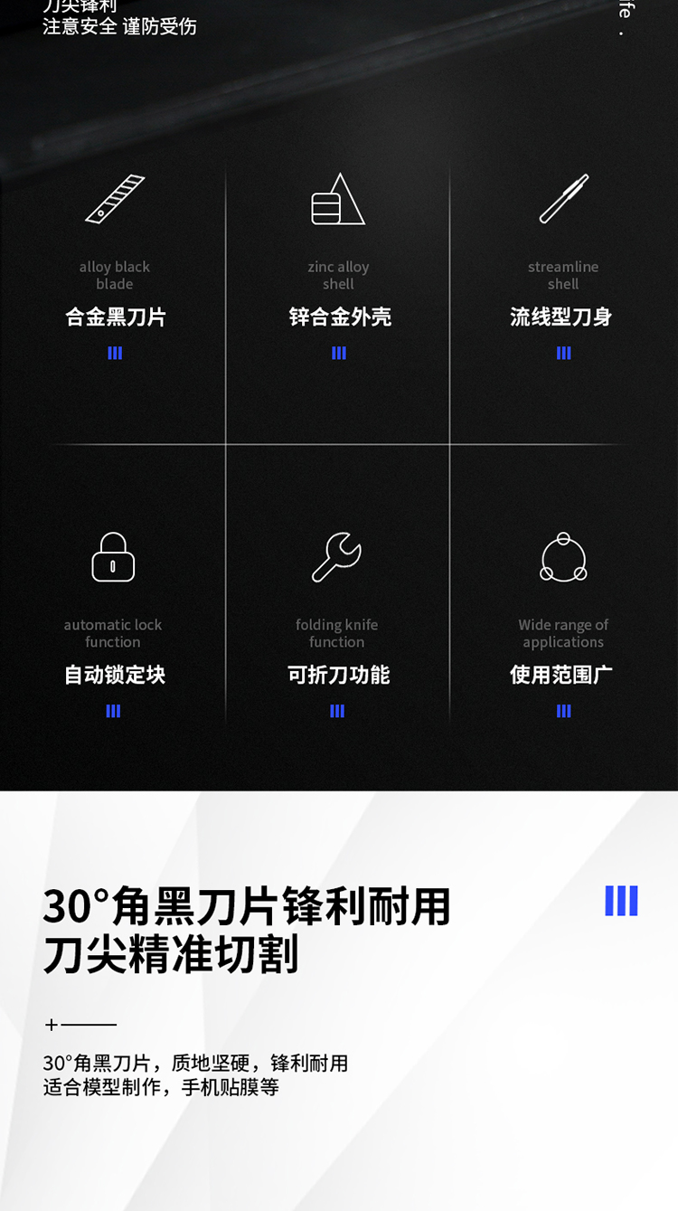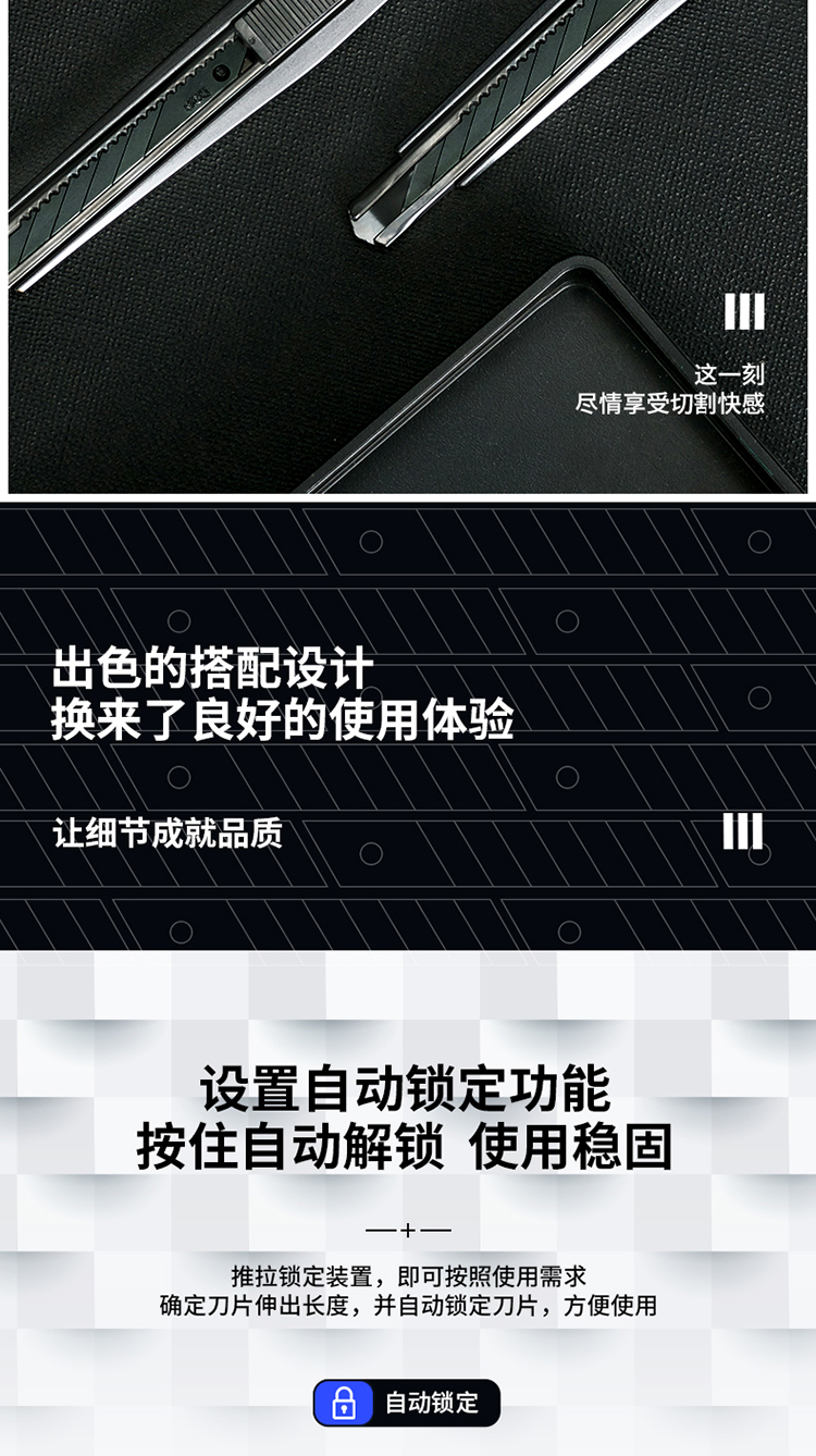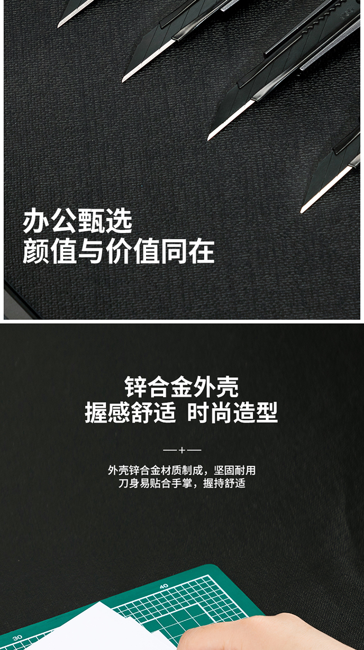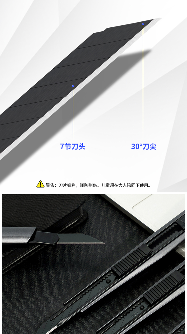 得力(deli)小號30°黑刀刃鋅合金美工刀/裁紙刀/壁紙刀 2037S