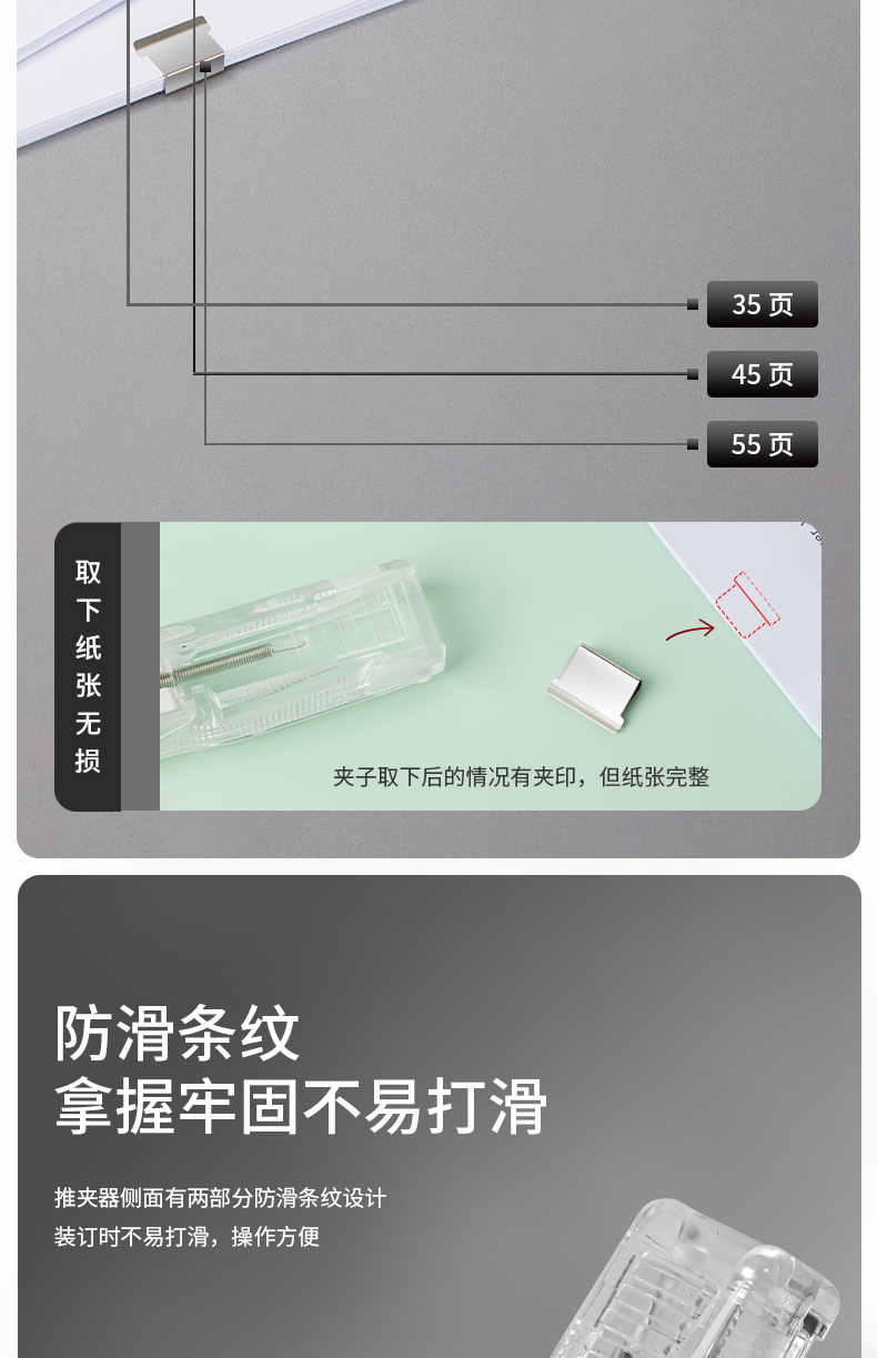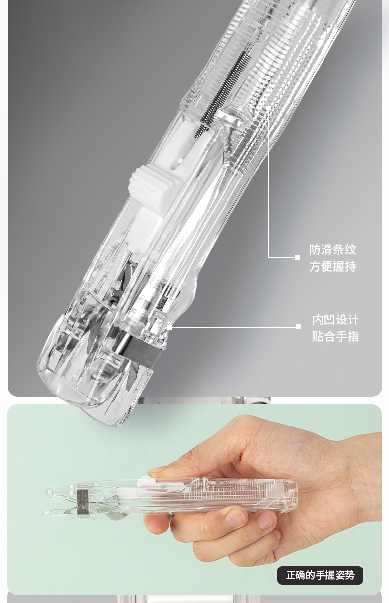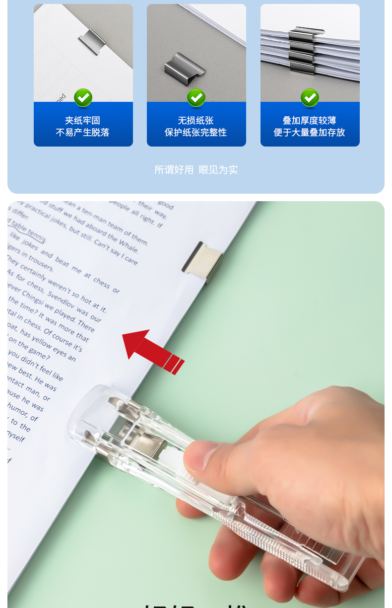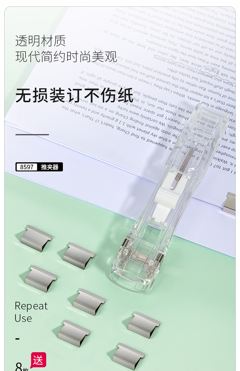得力(deli)裝訂推夾器 學(xué)生辦公便攜裝訂器 可夾紙張數(shù)55張 透明 8597