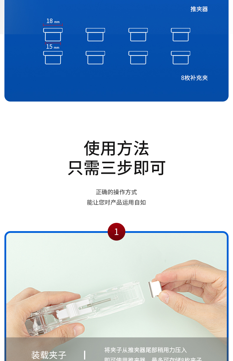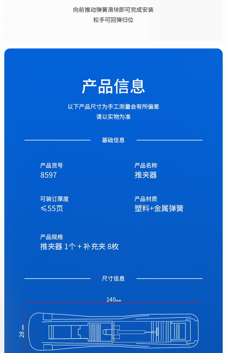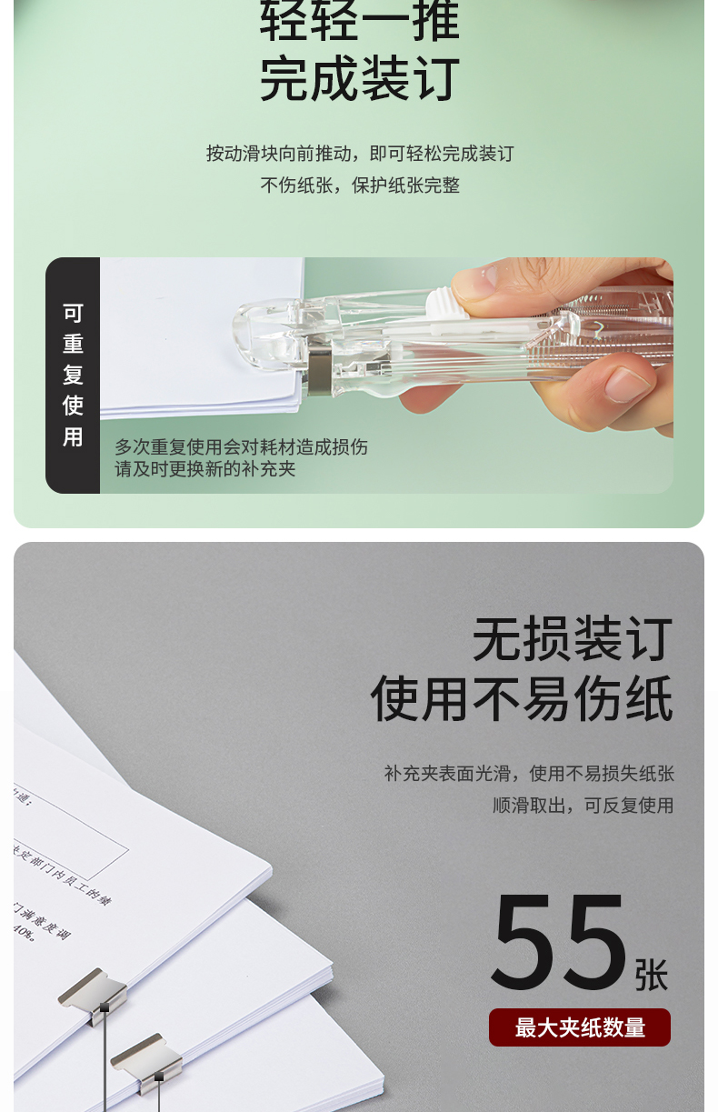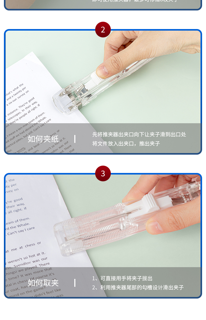 得力(deli)裝訂推夾器 學(xué)生辦公便攜裝訂器 可夾紙張數(shù)55張 透明 8597