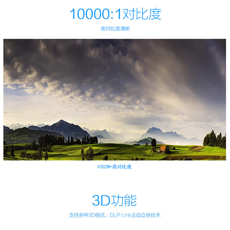 10000:1對(duì)比度,3D寬屏投影儀,內(nèi)置8W揚(yáng)聲器,雙HDMI輸入接口 ?