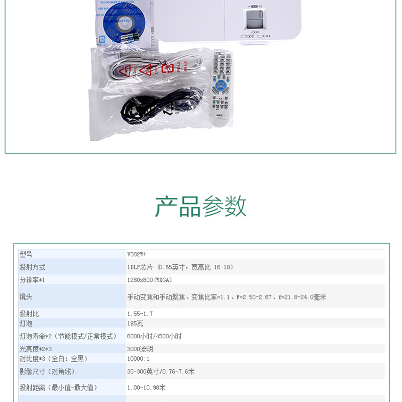 NEC NP-V302W+ 商務(wù)辦公投影機(jī) 寬屏3000流明
