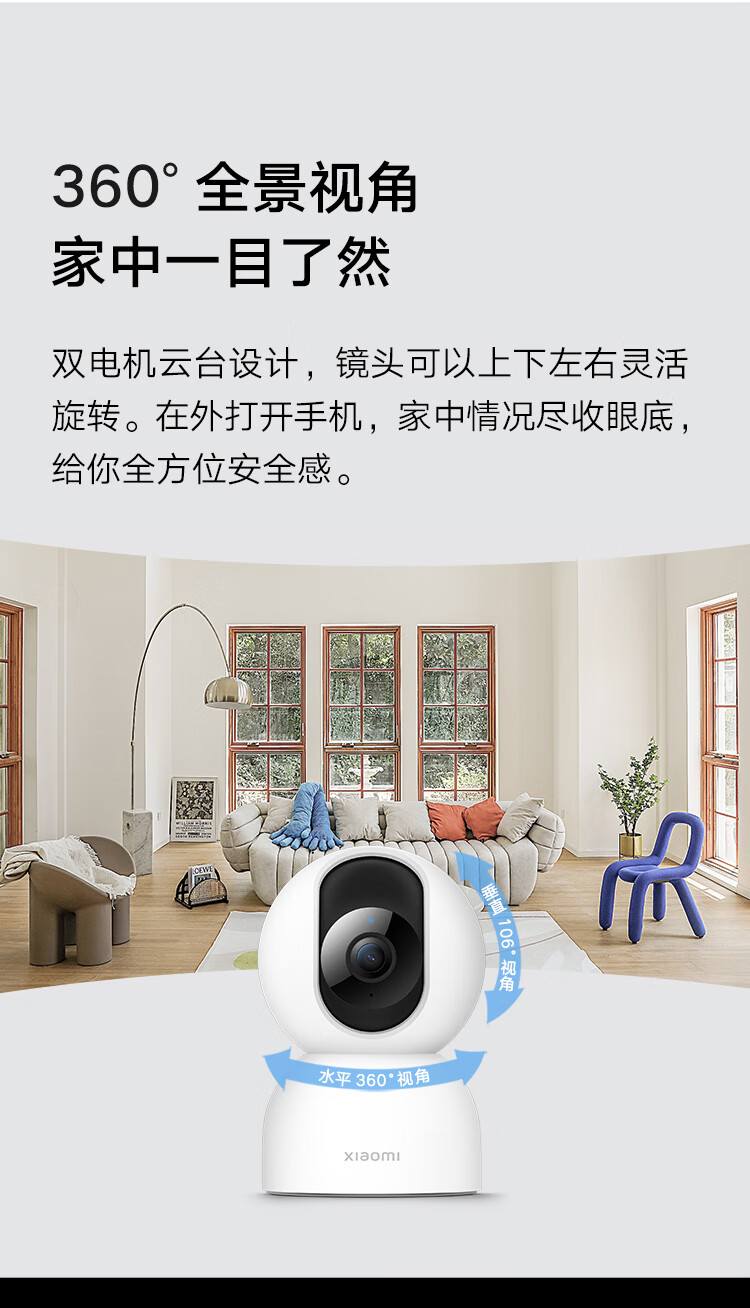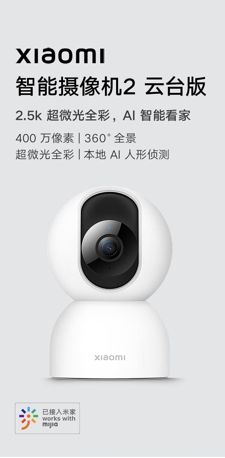 小米智能攝像機(jī)2 云臺(tái)版 400萬(wàn)像素 超微光全彩 家用攝像頭