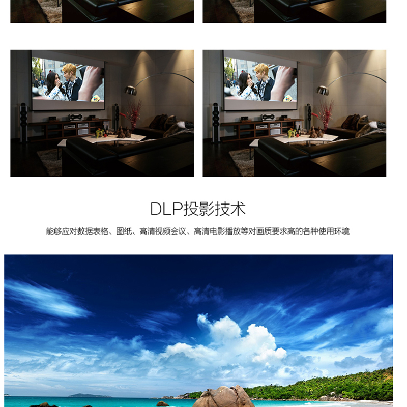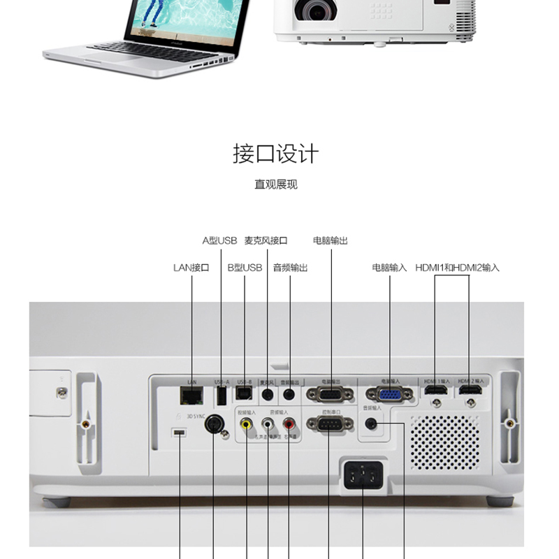 1.7倍變焦比鏡頭,自動節(jié)能模式,支持藍光3D播放,20W揚聲器,支持無線 ?