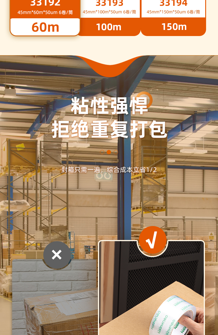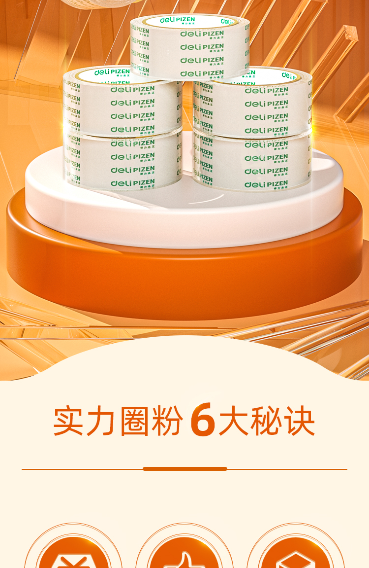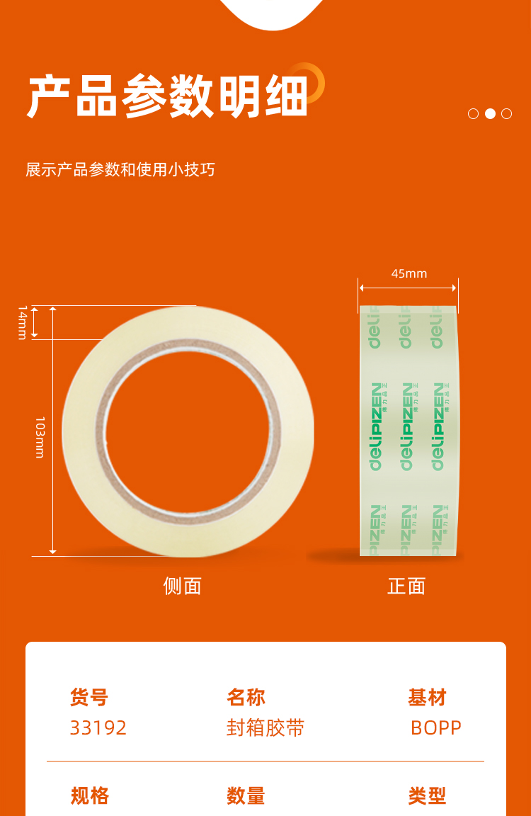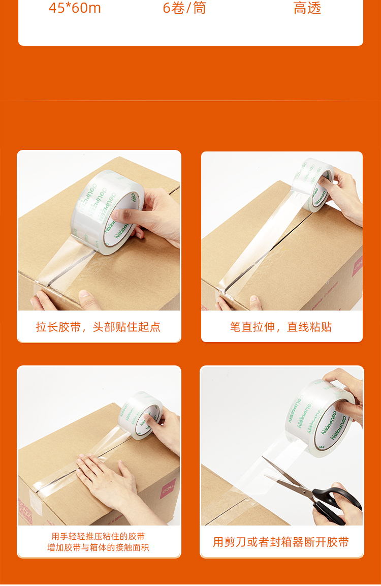 得力(deli) 透明膠帶 45mm*60m*50um 6卷/筒 辦公用品 筒裝 30173