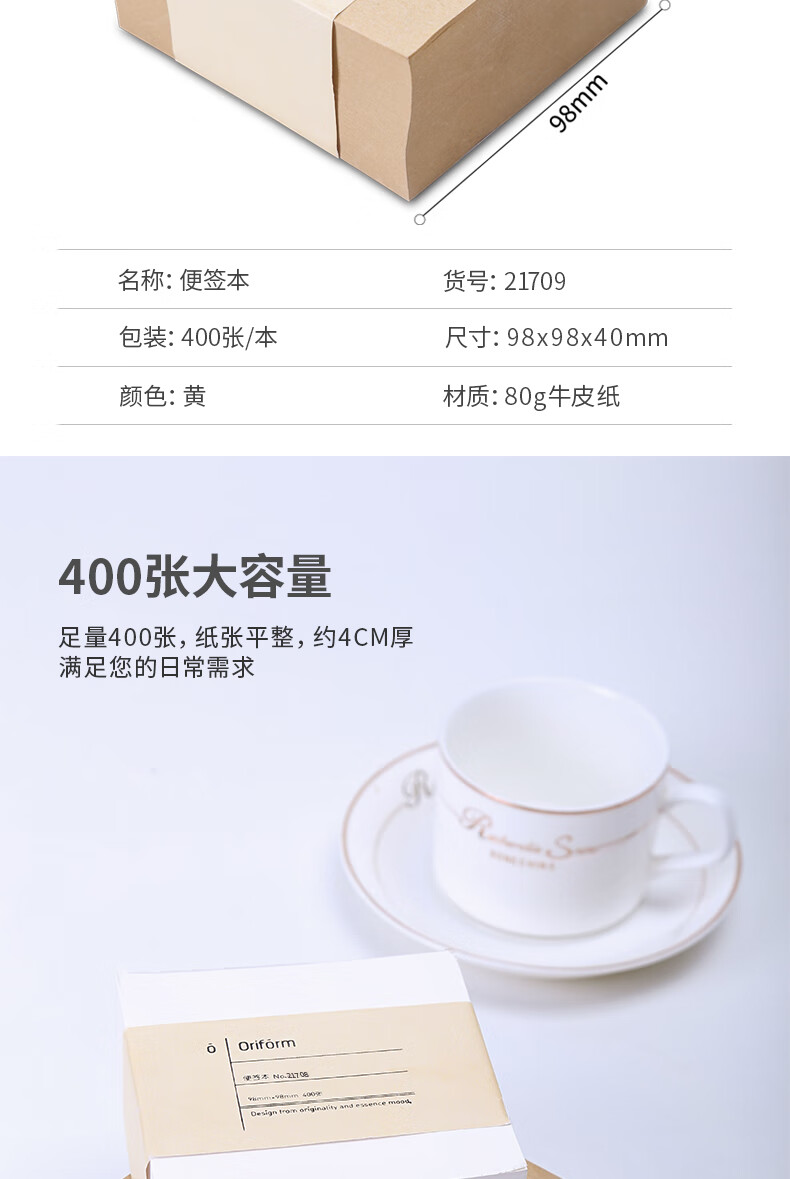 得力(deli)400張98*98mm簡約牛皮紙便筏本 21709