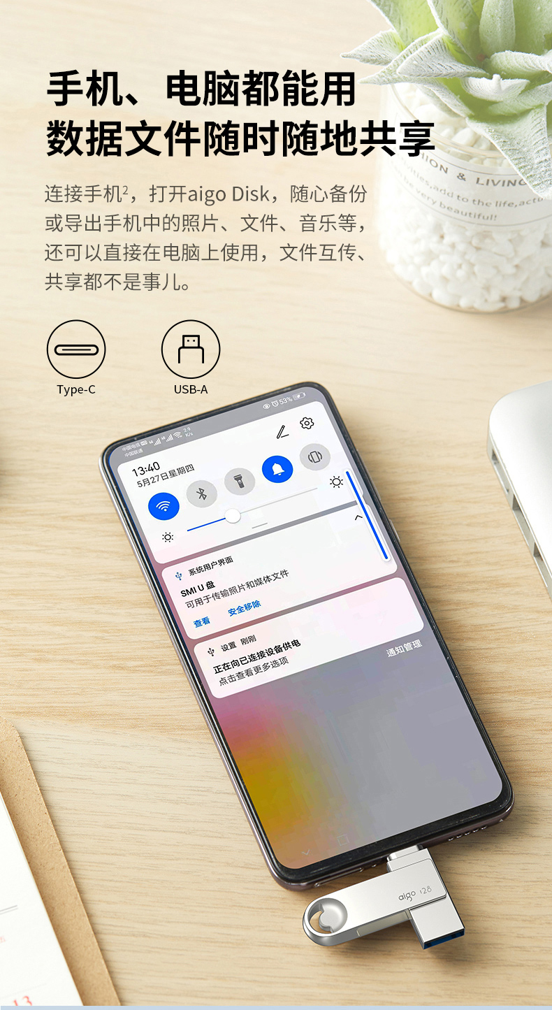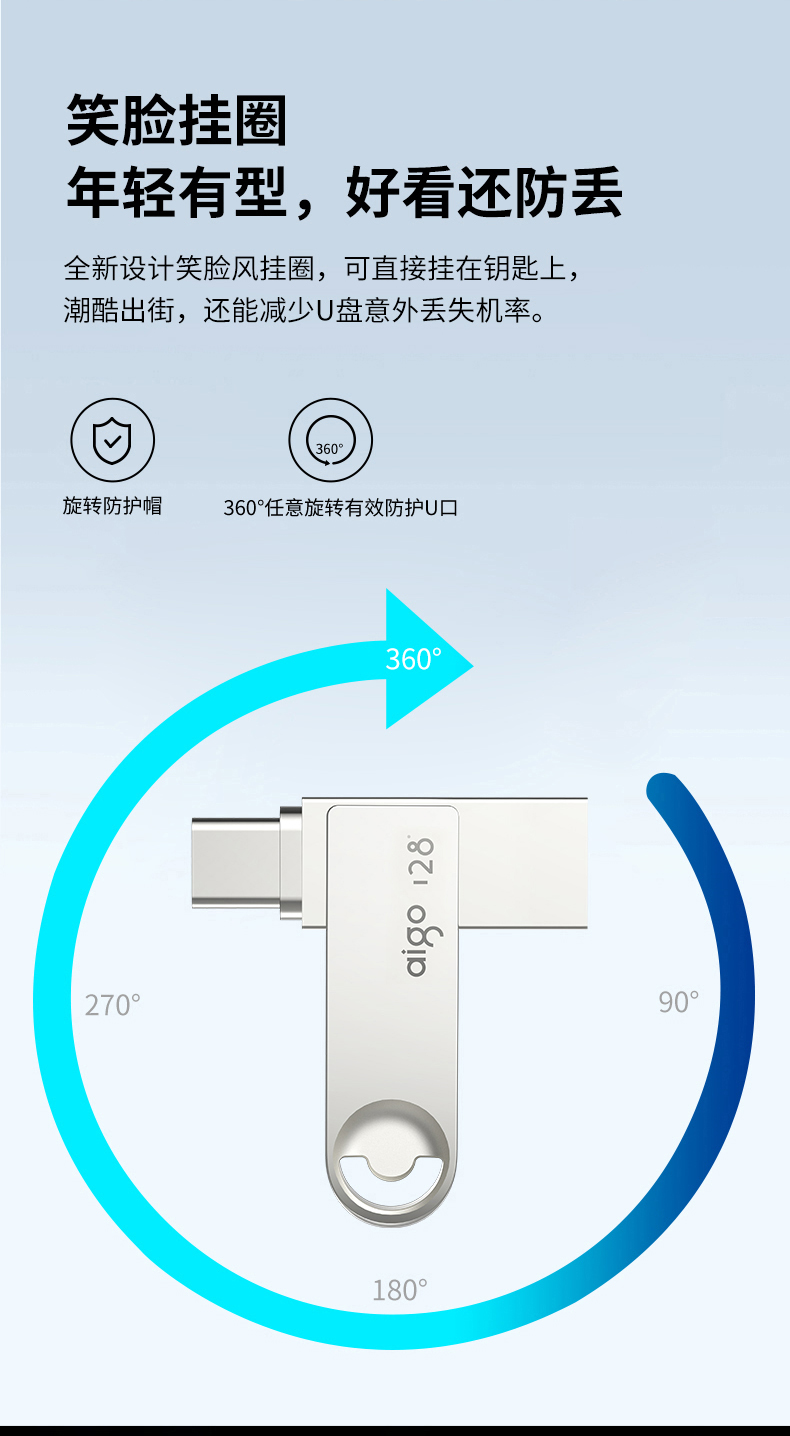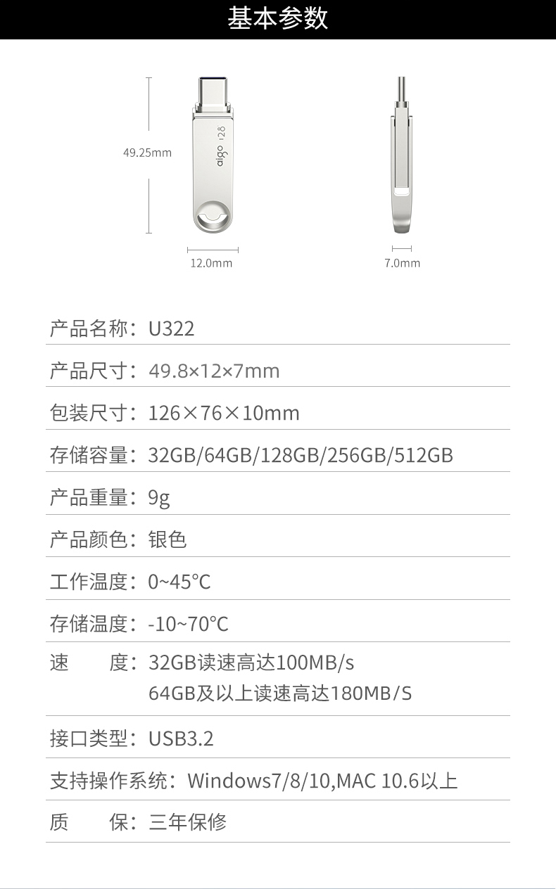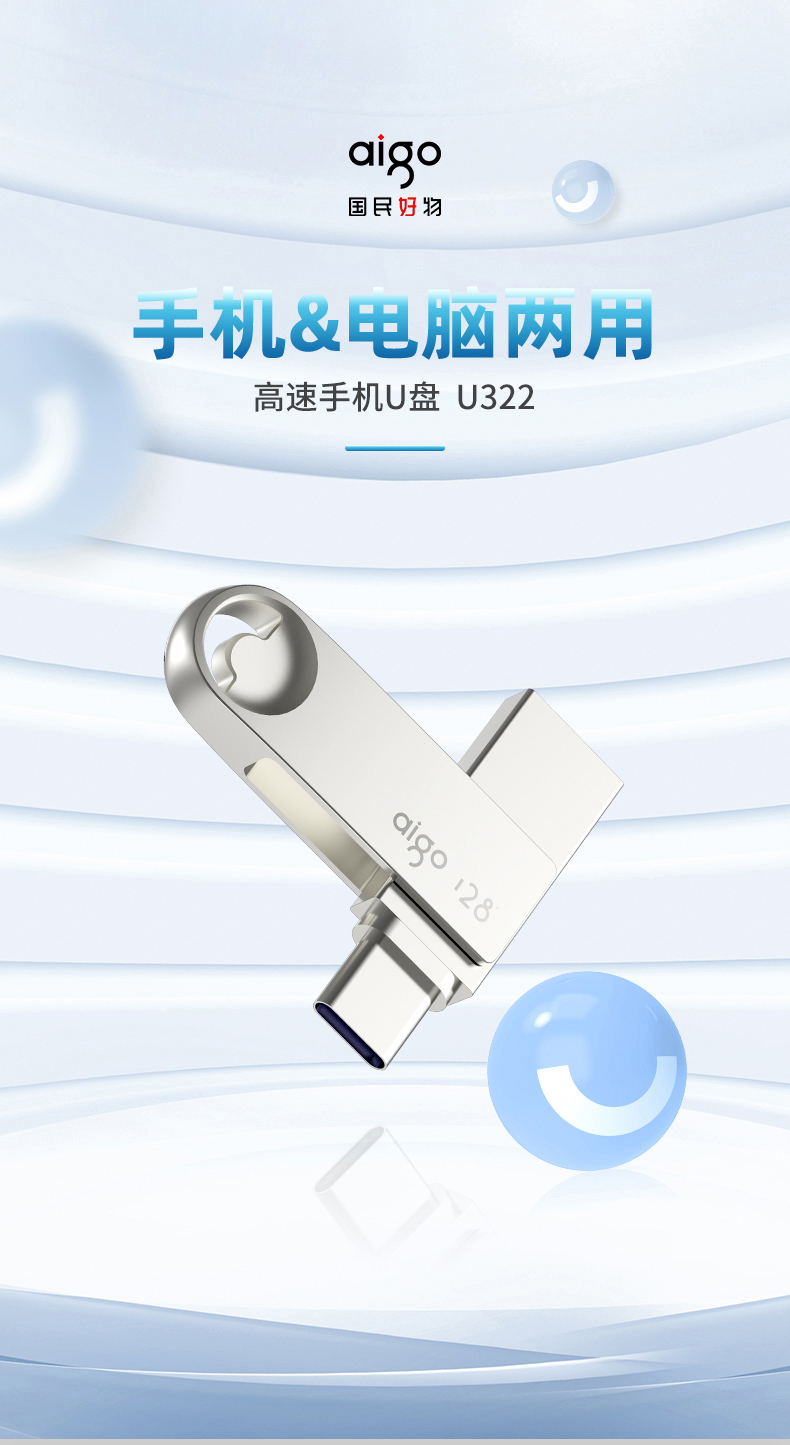 愛國者(aigo)128GB Type-C USB3.2 U盤 U322