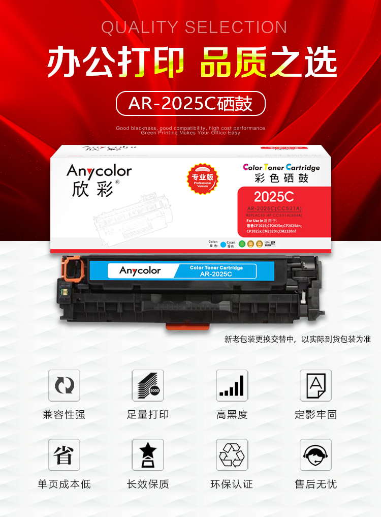欣彩(Anycolor)AR-2025C(專業(yè)版)CC531A藍(lán)色硒鼓 304A 適用惠普HP Color LaserJet CP2025 2320