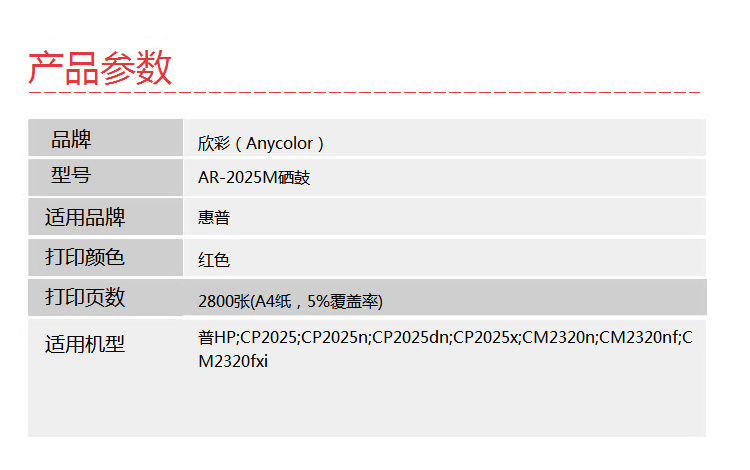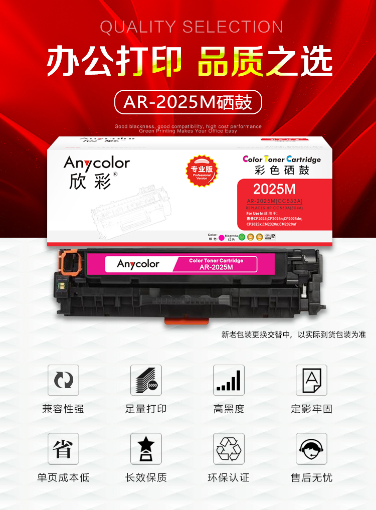 欣彩(Anycolor)AR-2025M(專業(yè)版)CC533A紅色硒鼓 304A 適用惠普HP Color LaserJet CP2025 2320